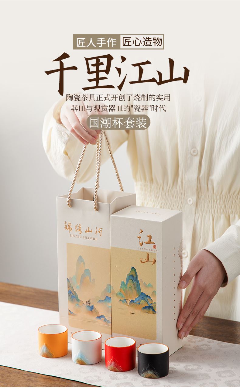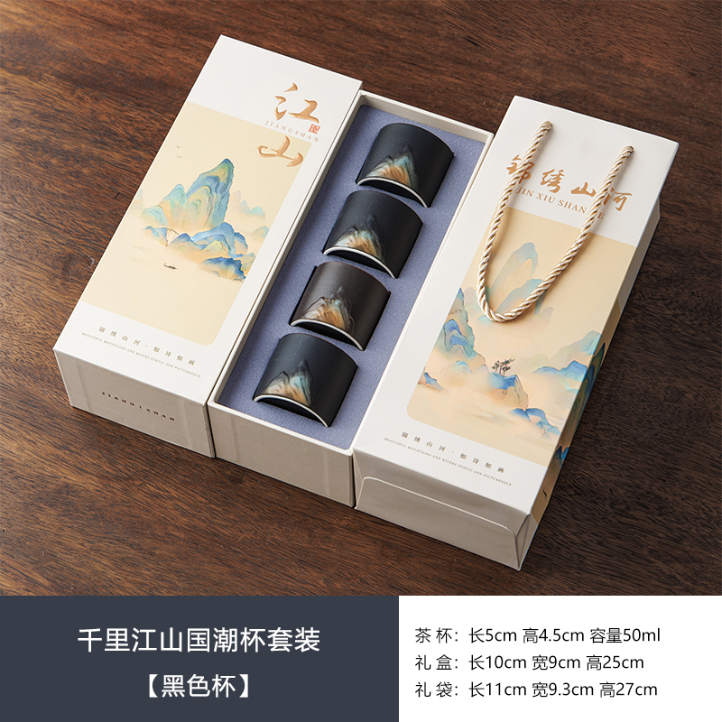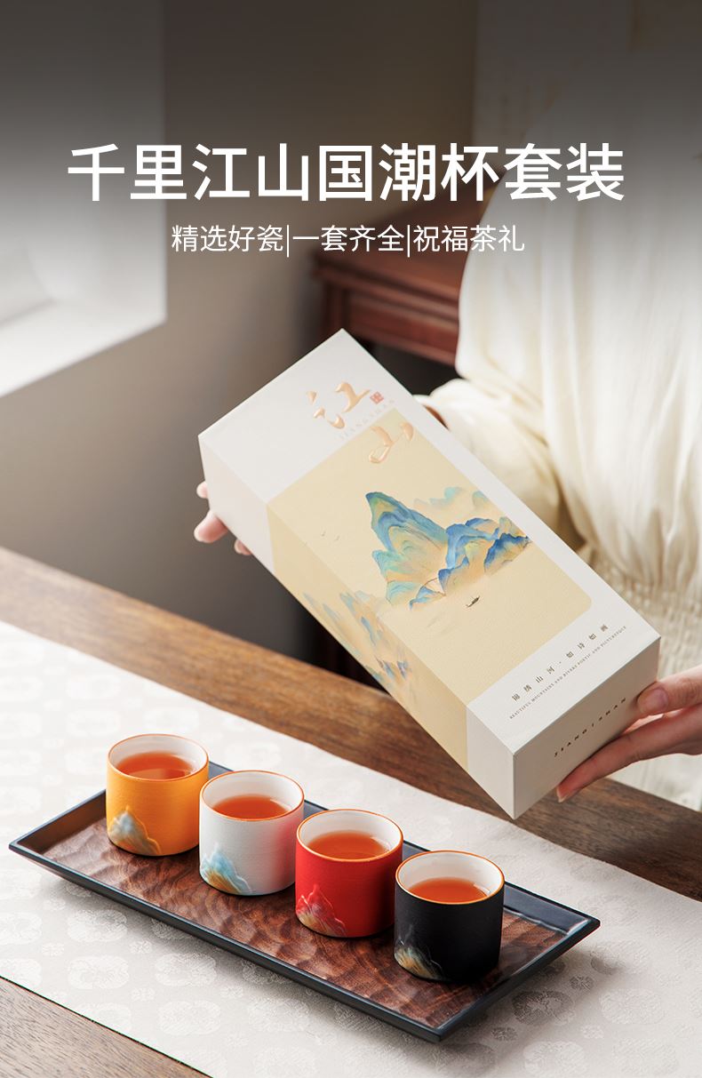 瓷语花香千里江山品茗杯套装