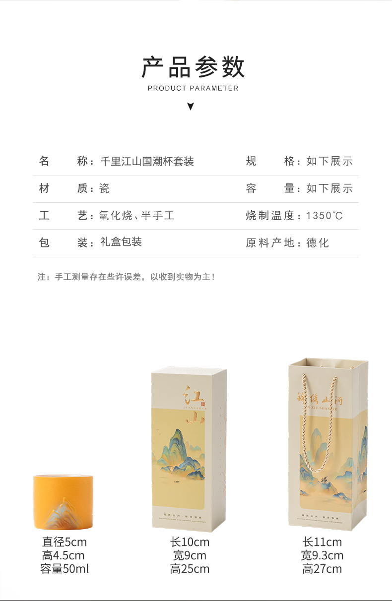 品茗杯:5*4.5厘米50ml 礼盒 :25*10*9厘米 天然矿物釉,高温烧制无铅镉 ,一件代发,一套起定,品质保障,甄选好礼。