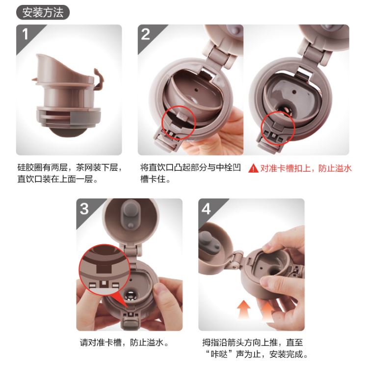 产品特点: 杯盖组可拆卸,方便清洗。 杯盖有安全锁,防止不小心按压开关而导致水流出 一键式开启,设有防喷热水装置,安全贴心 容量:450毫升