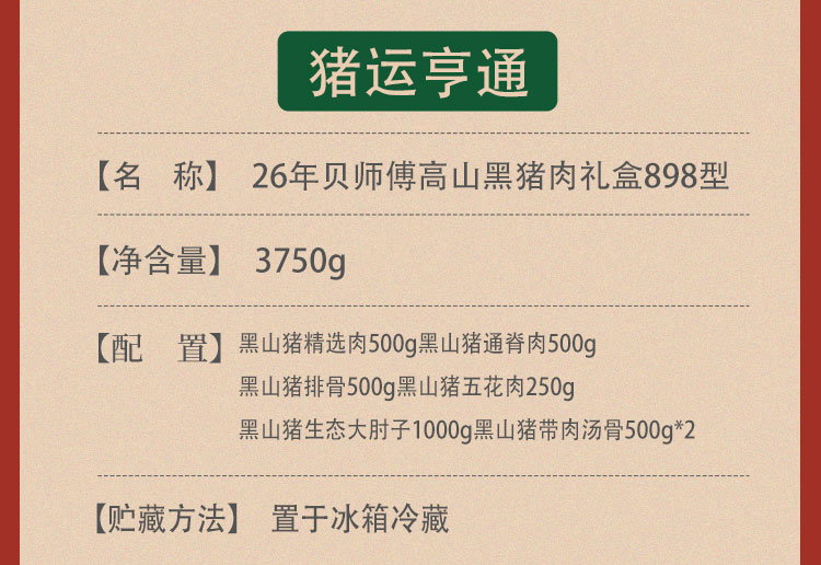 26年贝师傅高山黑猪肉礼盒898型-猪运亨通