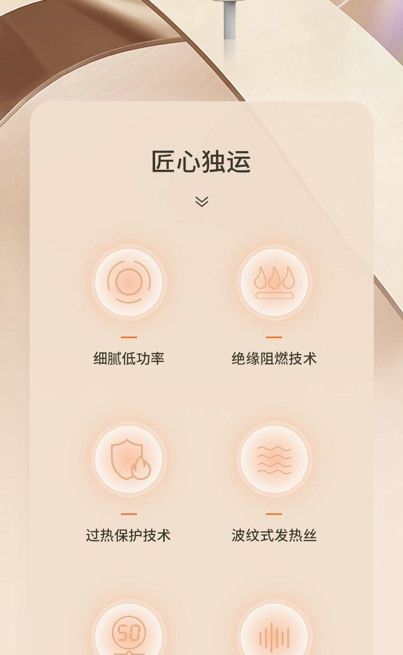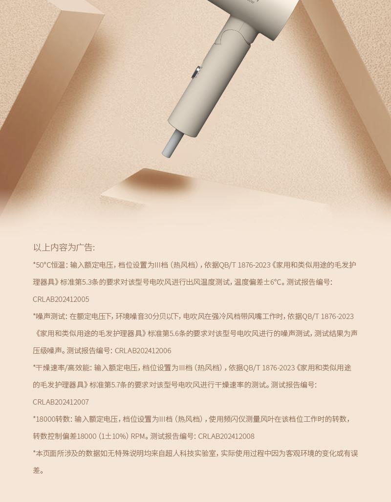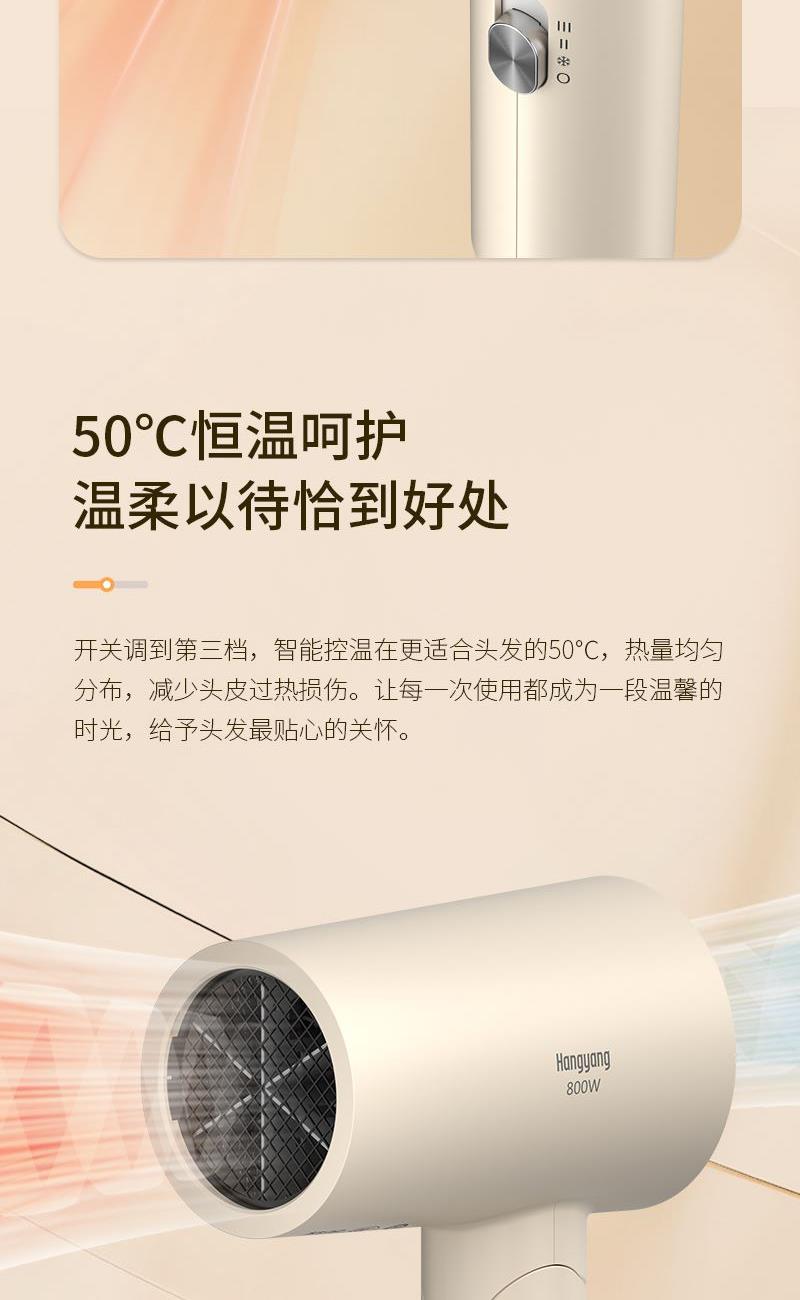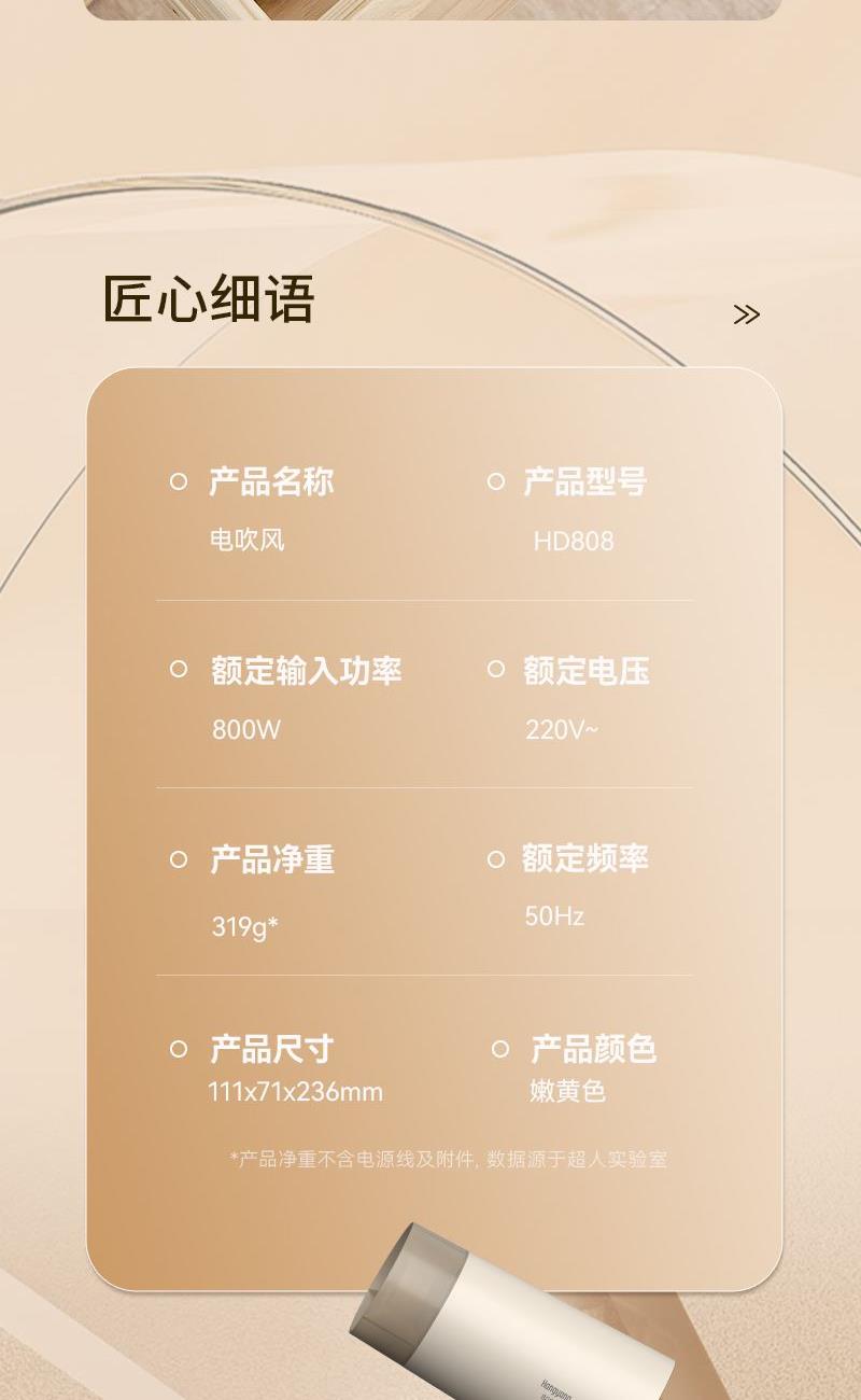 产品尺寸:111x71x236mm 彩盒尺寸:123x81x215mm 离心式六叶扇,可折叠手柄设计 过热保护技术,波纹式发热丝 三档风温调节,智能恒温控制 柔风速千出风口,低噪音设计 大风量快干技术 功率:800W