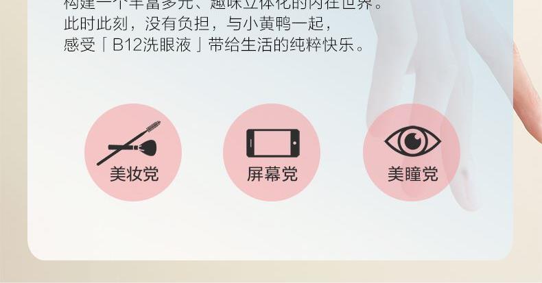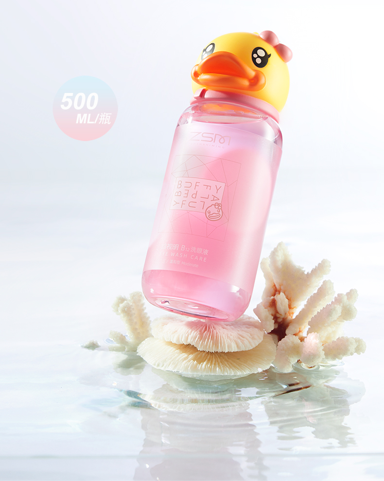 500ml 1.深层清洁眼部灰尘、眼妆残留、蛋白沉淀等异物。 2.添加维生素B12、海藻糖、牛磺酸等营养成分,水润滋养眼部 3.pH值、渗透压接近泪液,温和洗眼,不刺激眼睛。 4.两种清凉度可选,自由选择合适的清凉度。 5.小黄鸭外包装升级,解鸭加倍