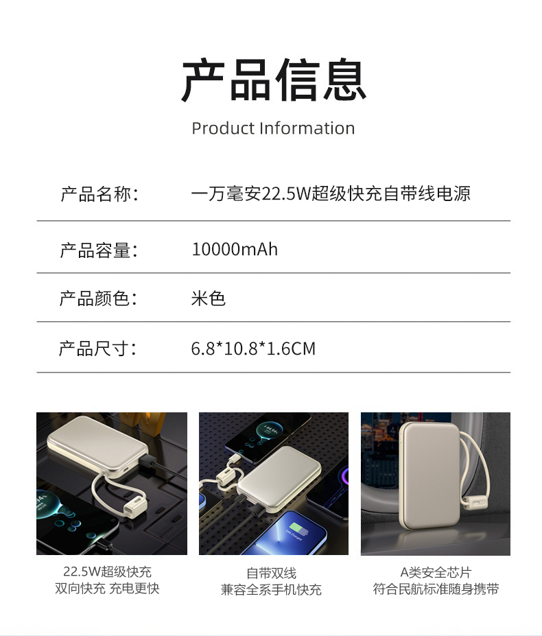 1、一万毫安22.5W超薄铝合金快充移动电源 22.5W超级快充超薄机身 双线快充提绳设计,铝合金面盖 3C符合民航局标准,可随身携带 2、灵动环OWS挂耳式空气传导蓝牙耳机 云感挂耳设计 久戴不累 定向传音技术 智能通话降噪 触摸功能操作 数字屏电量