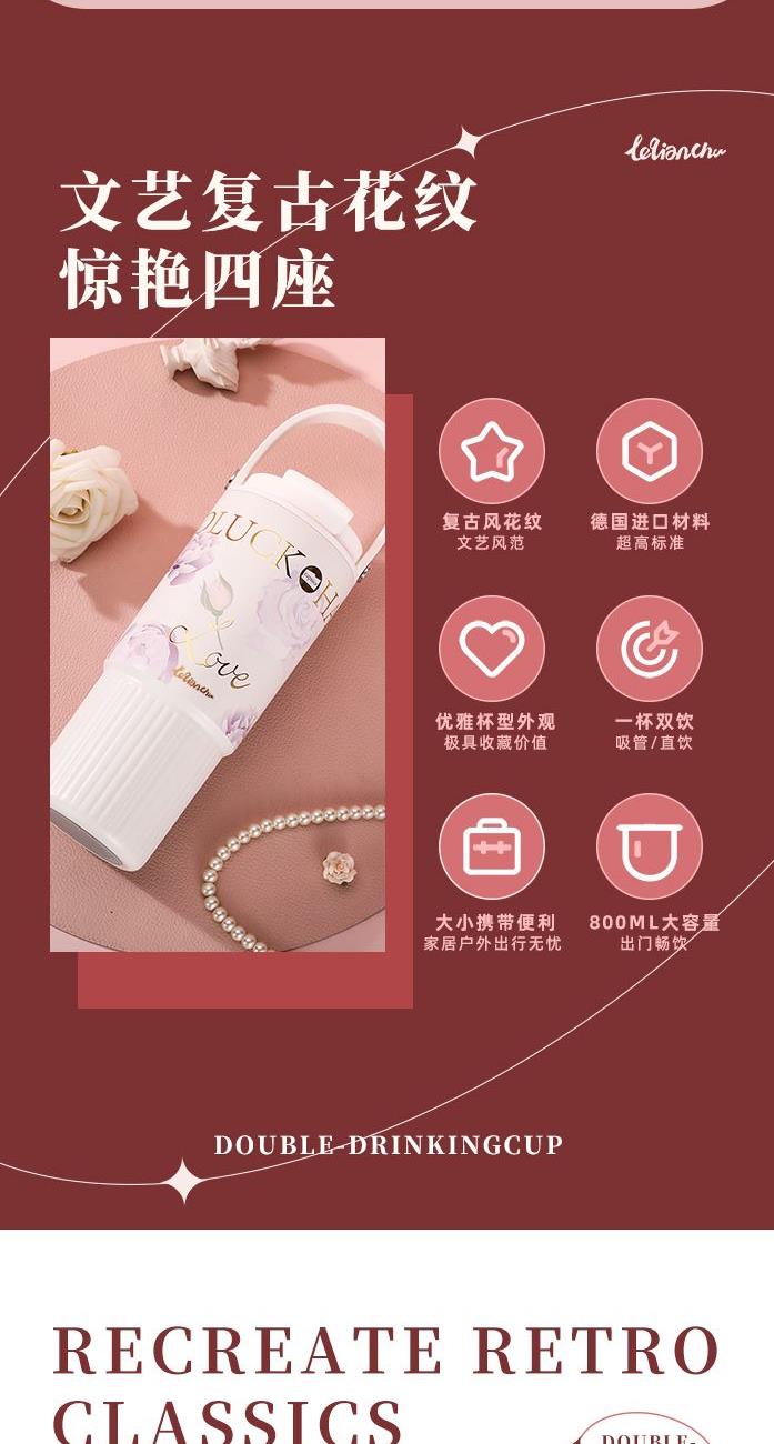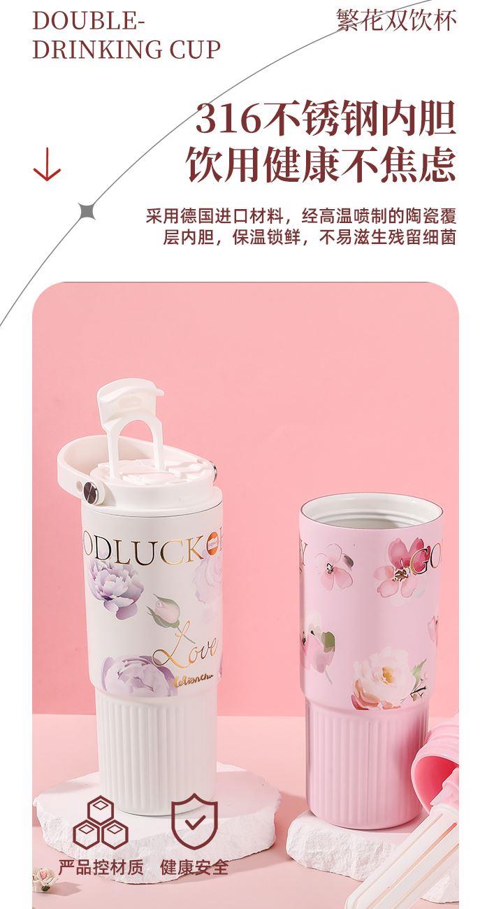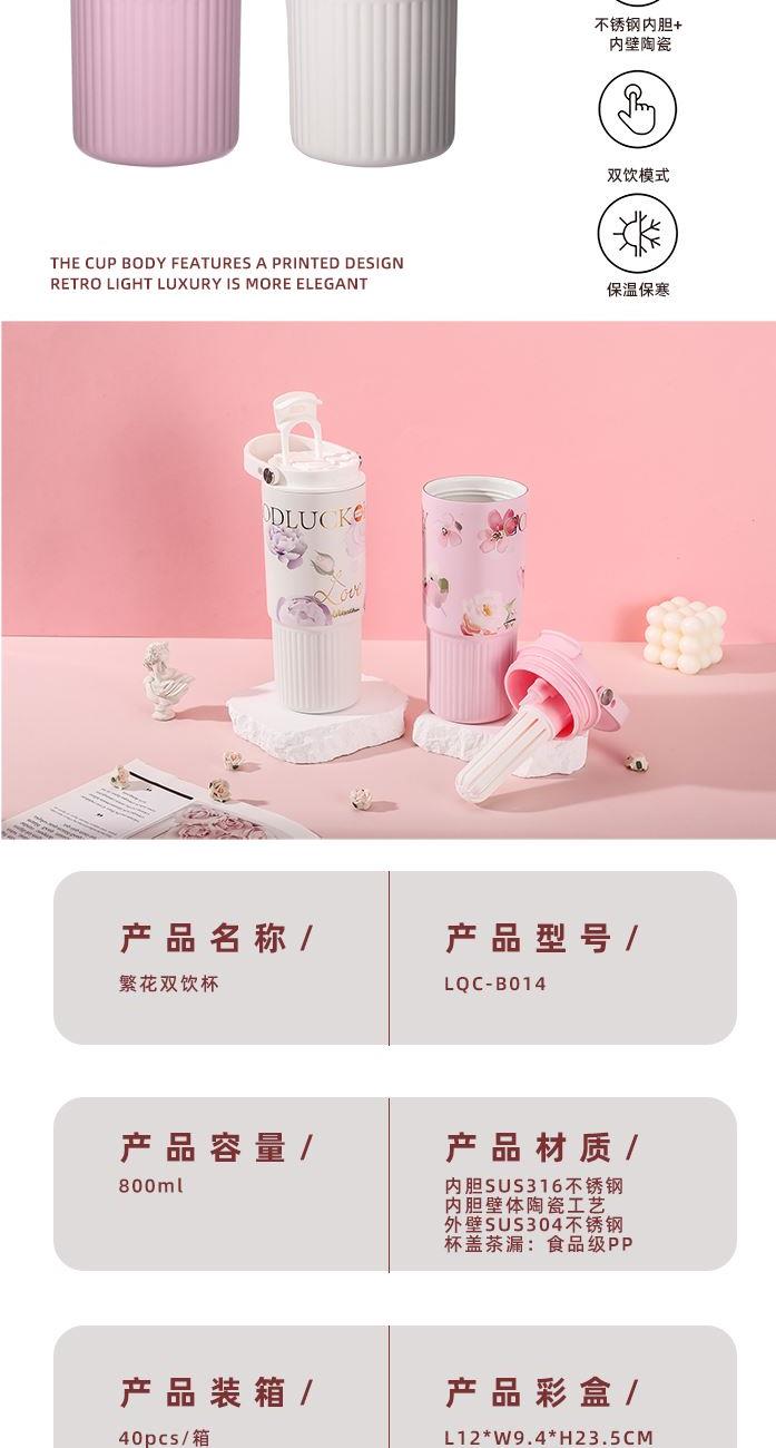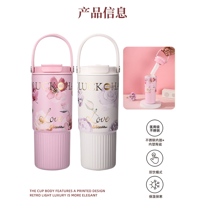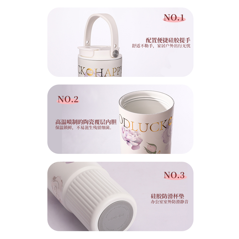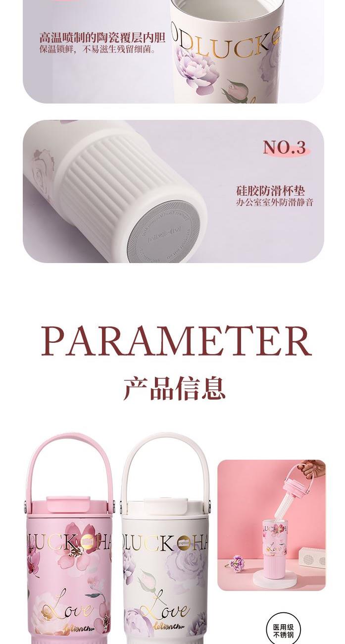 颜 色: 白色(粉色定制) 容 量:800ml 材 质:内胆SUS316不锈钢、内胆壁体陶瓷工艺 、外壁SUS304不锈钢、杯盖茶漏:食品级PP 彩 盒 尺 寸:L12*W9.4*H23.5CM 1、采用德国进口材料,经高温喷制的陶瓷覆层内胆,保温锁鲜,不易滋生残留细菌。 2、超大容量,配置便捷硅胶提手,舒适不勒手,家居户外出行无忧。 3、全身可拆洗,易清洁无死角,污渍不残留; 4、杯身印花设计,复古轻奢更优雅。