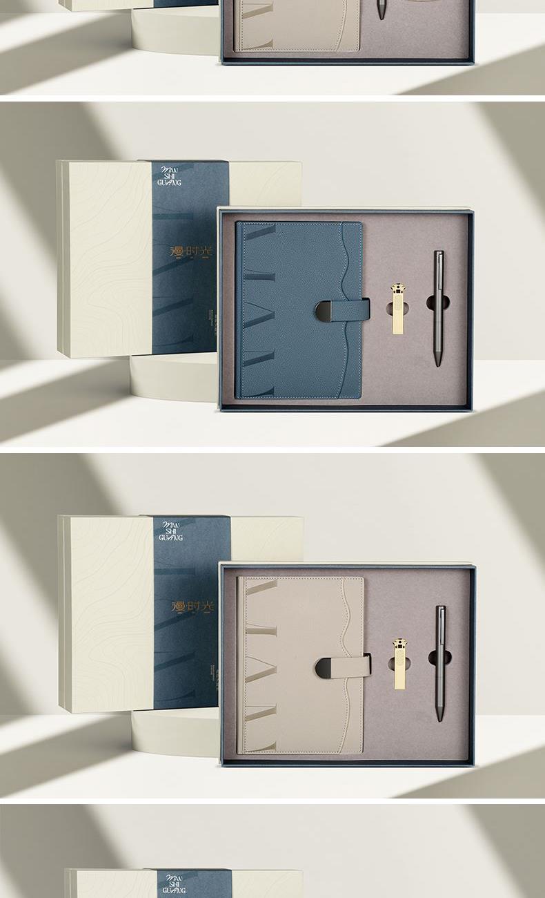 配置 A5笔记本:14.5x21cm(100张 100g ) U盘:1.5x6cm(16G/32G/64G可选) 签字笔:13.8X0.97cm 材质 工业灰板/特种纸/不锈钢/ABS/硅胶/胡桃木 工艺 烫金/UV彩印/磨砂光油/滴胶/电镀 尺寸 包装盒:300x238x75(MM) 手提袋:358x270x85(MM)