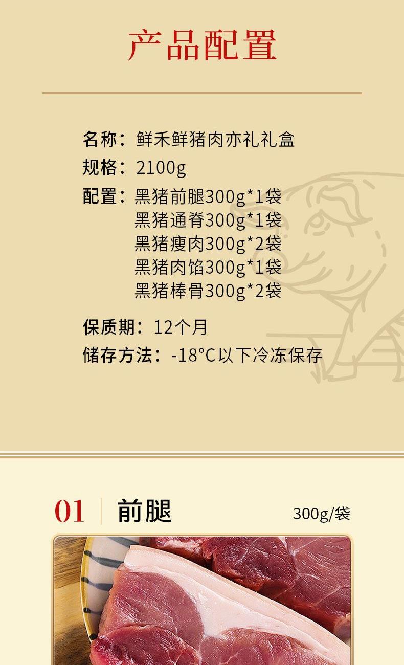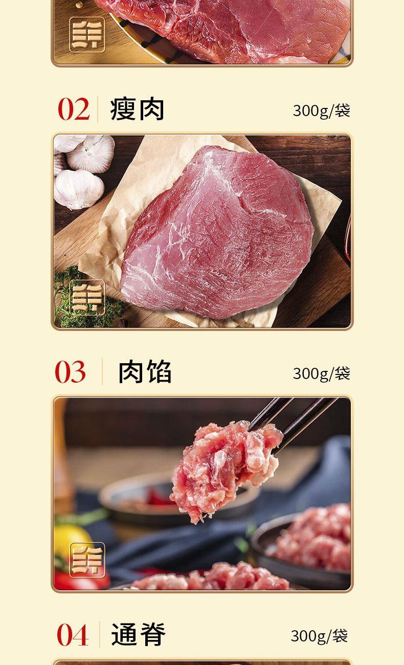 "前腿300g*1袋 通脊300g*1袋 瘦肉300g*2袋 肉馅300g*1袋 棒骨300g*2袋" 2100g