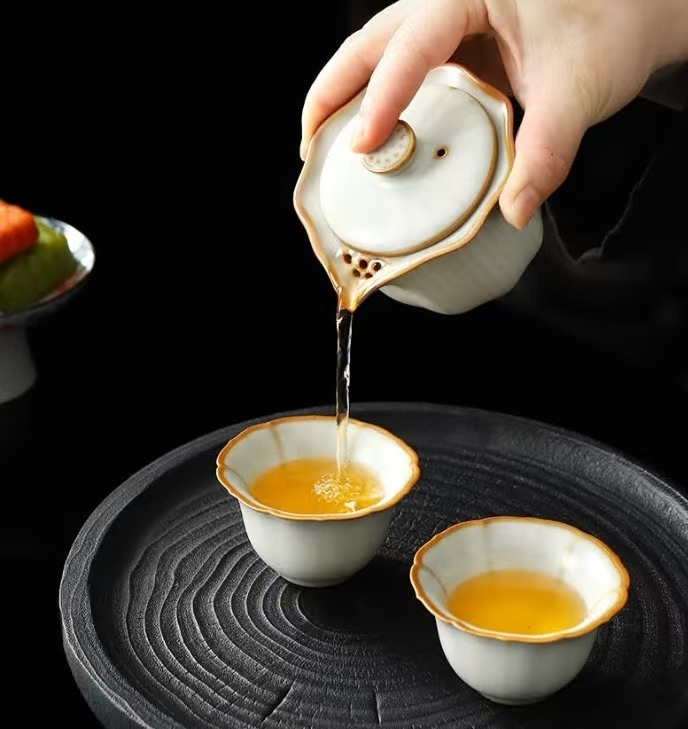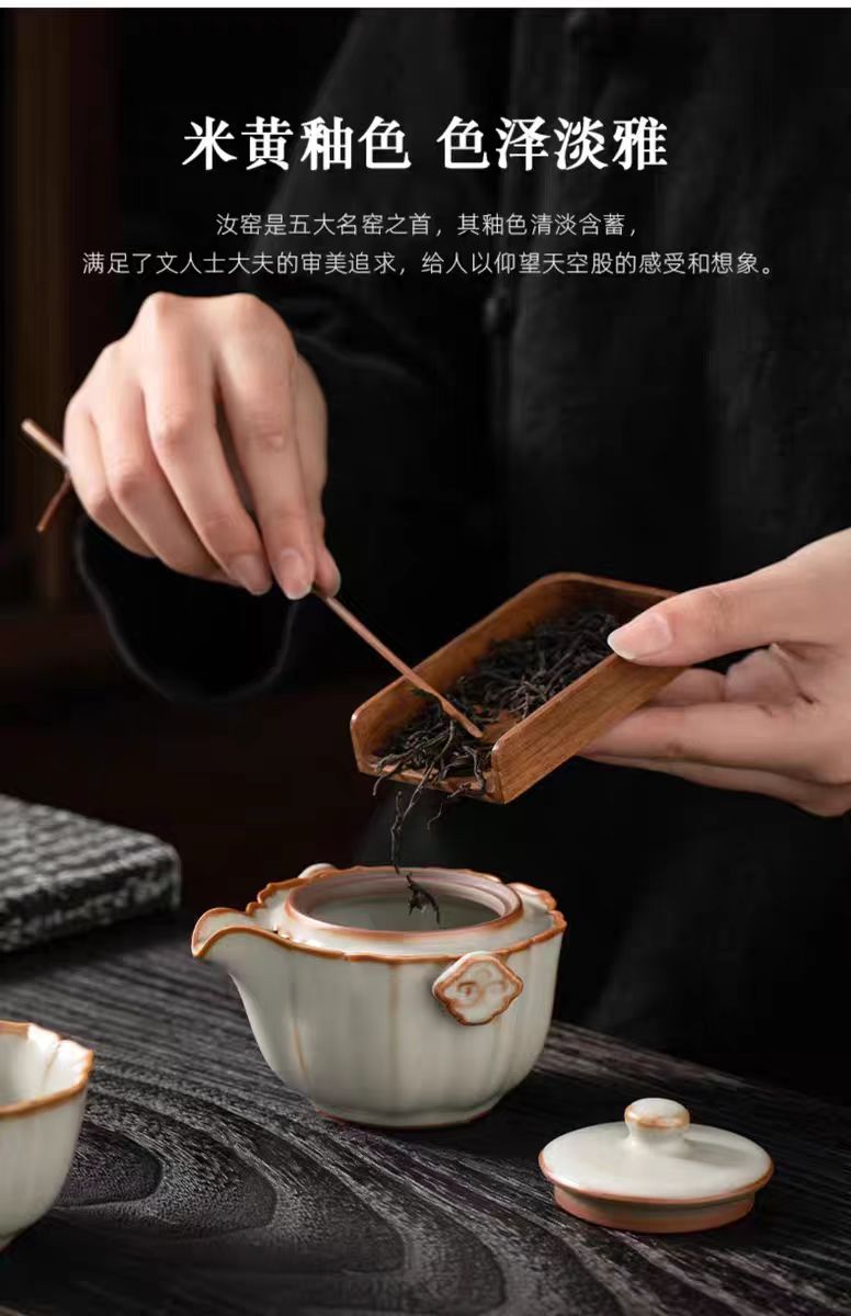 鹏翼亚黄汝窑胡桃木茶盘套装