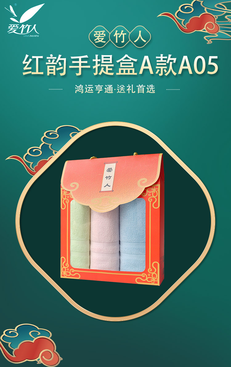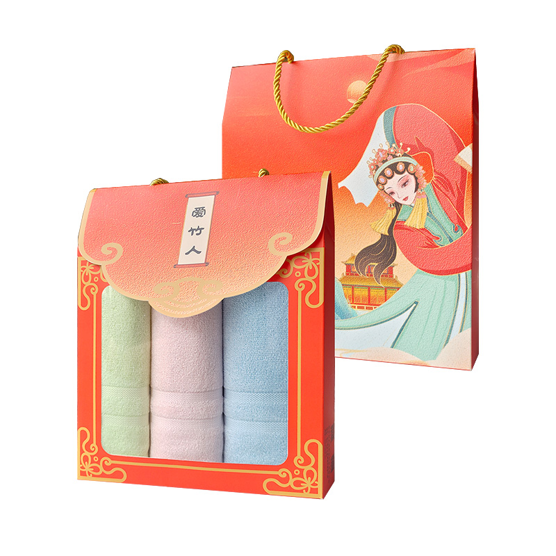 爱竹人竹纤维条缎毛巾红韵礼盒3条装A05