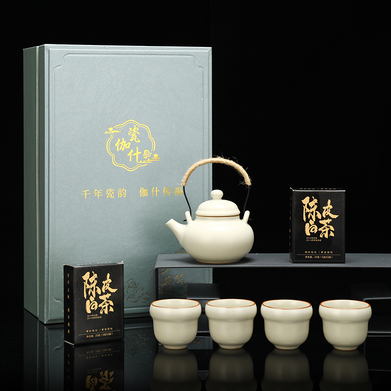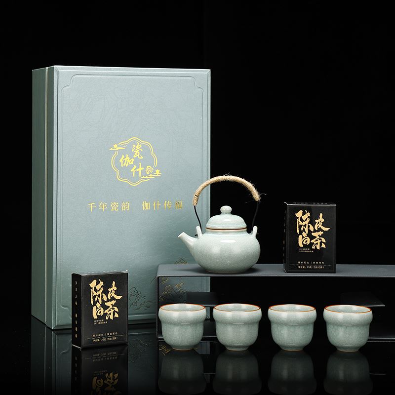 茶壶1:宽11cm*高12.6cm 140ml 茶杯4:宽6cm*高5cm 70ml 陈皮白茶2:(5g*5)*2盒 礼盒1:35.5cm*23cm*12.3cm 原矿瓷土,高温烧制,数十道工序,大器天成。 福禄造型,寓意吉祥。细节打磨,专注品质。 玛瑙入釉,蕴润柔和,如脂似玉,青翠华滋,肥润莹亮 汝窑冰花,釉面冰片雪花隐而不见,遇水冰融,水干冰现 经典黄釉,似晨光初染云层,又如秋葵向阳初绽。 精选优质白茶,口感香爽,茶香四溢,惬意享受茶生活。