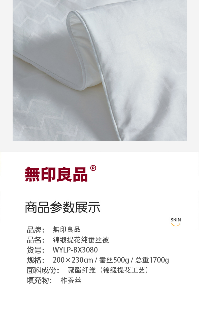 無印良品锦缎提花纯蚕丝被WYLP-BX3080