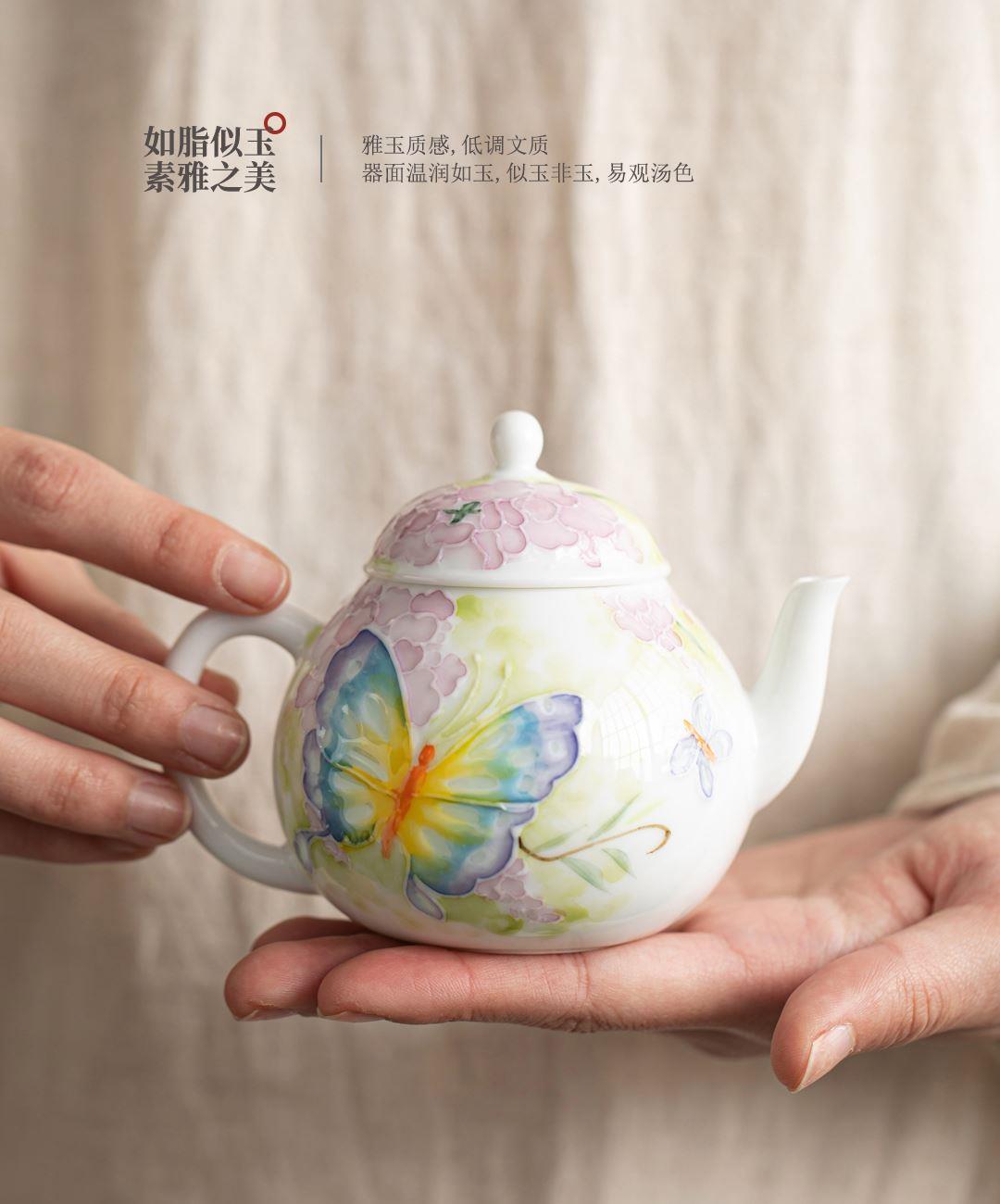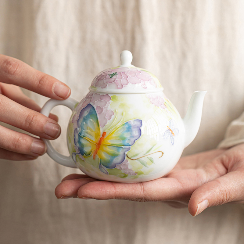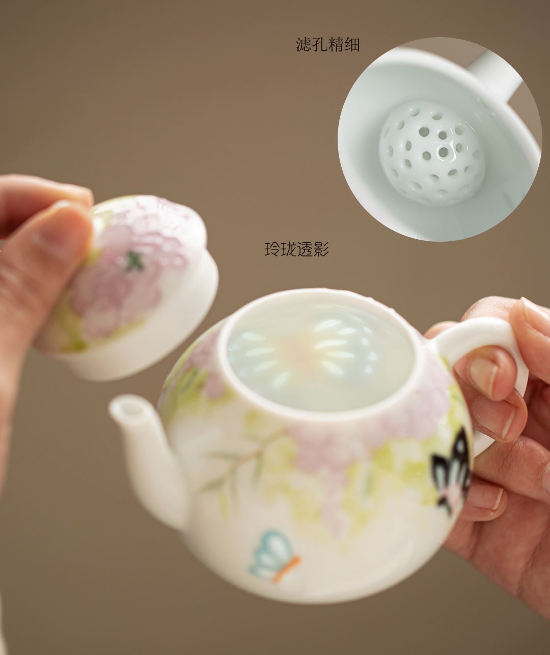 配置:茶壶*1,茶杯*2,茶碟*2. 尺寸:茶壶10.7*8cm 容量110ml, 茶杯5.7*4cm 容量50ml, 茶碟9*2cm。