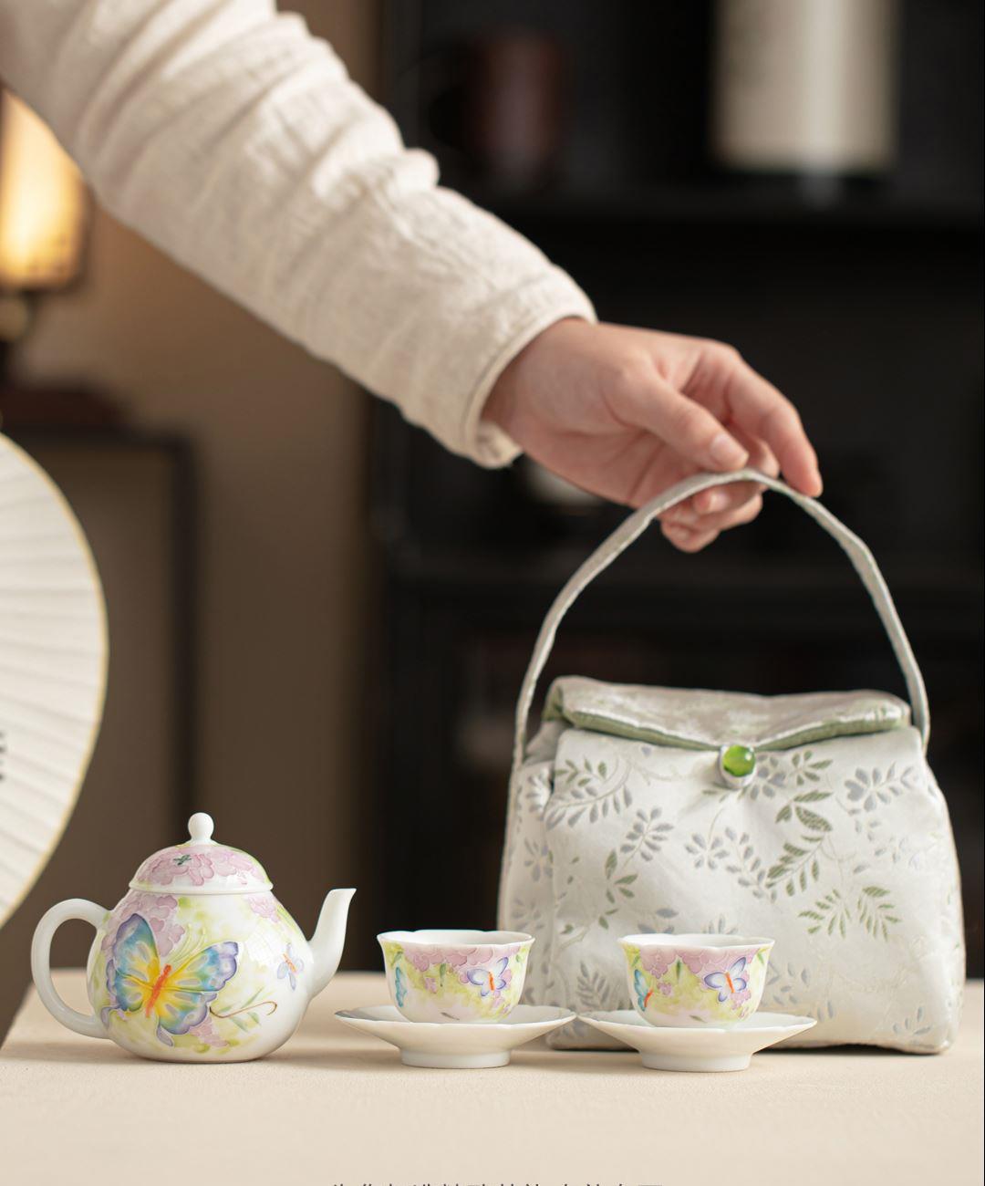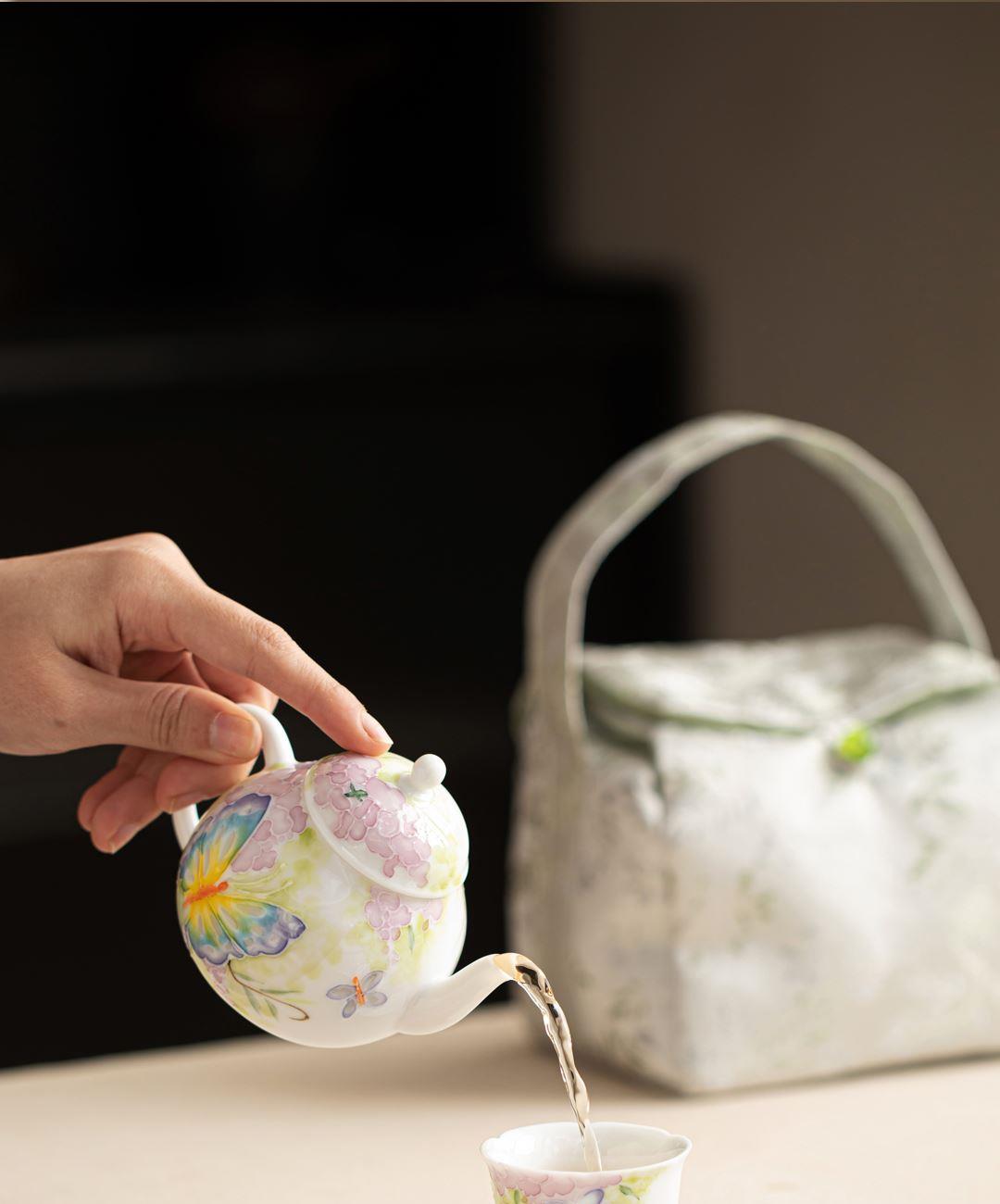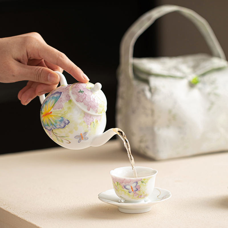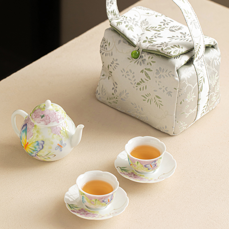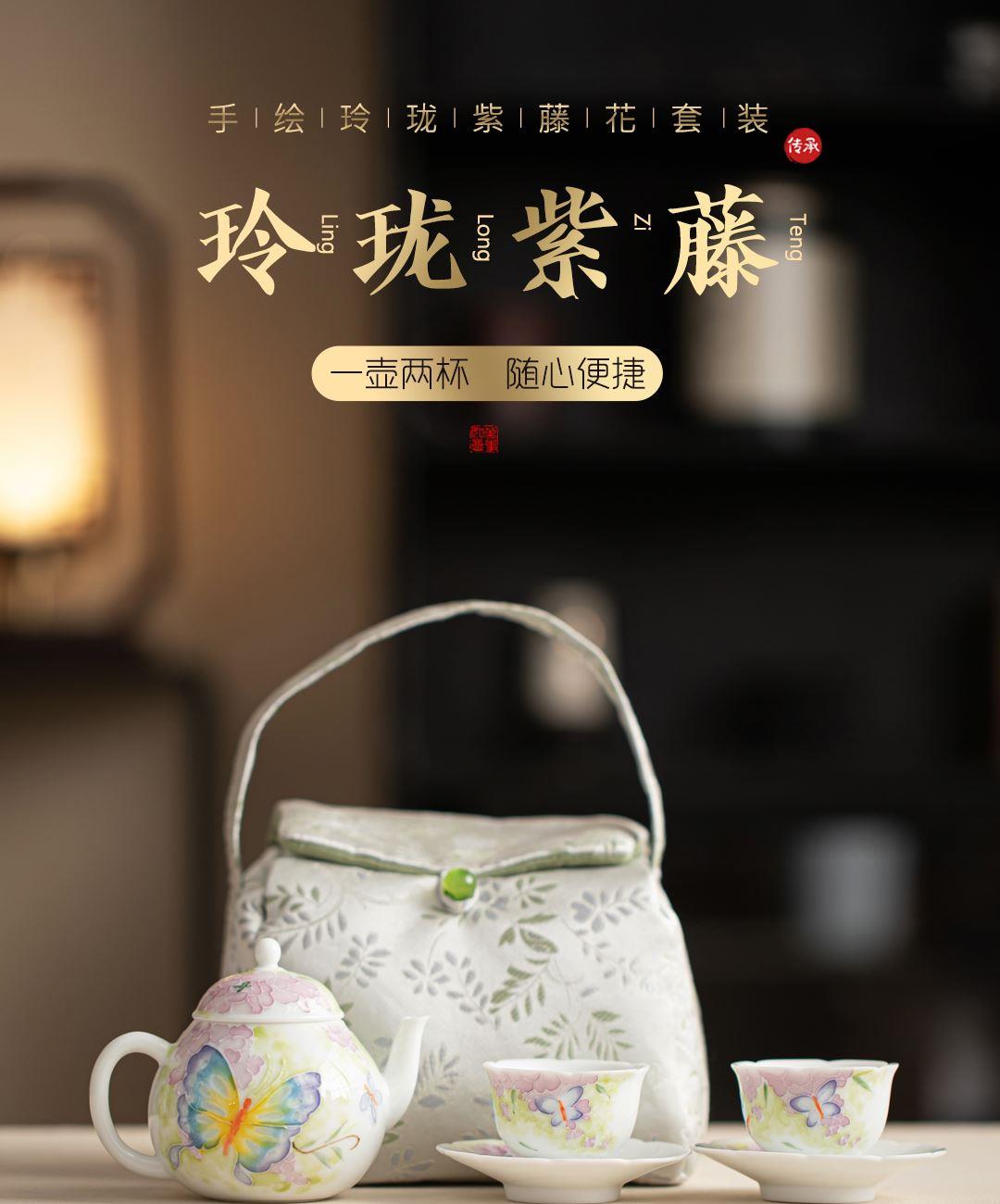 尾桥下窑母亲节创意伴手礼玲珑瓷手绘紫藤花旅行小套装开业礼品