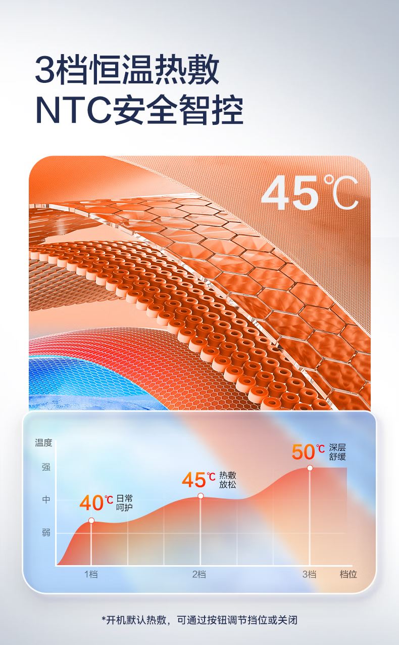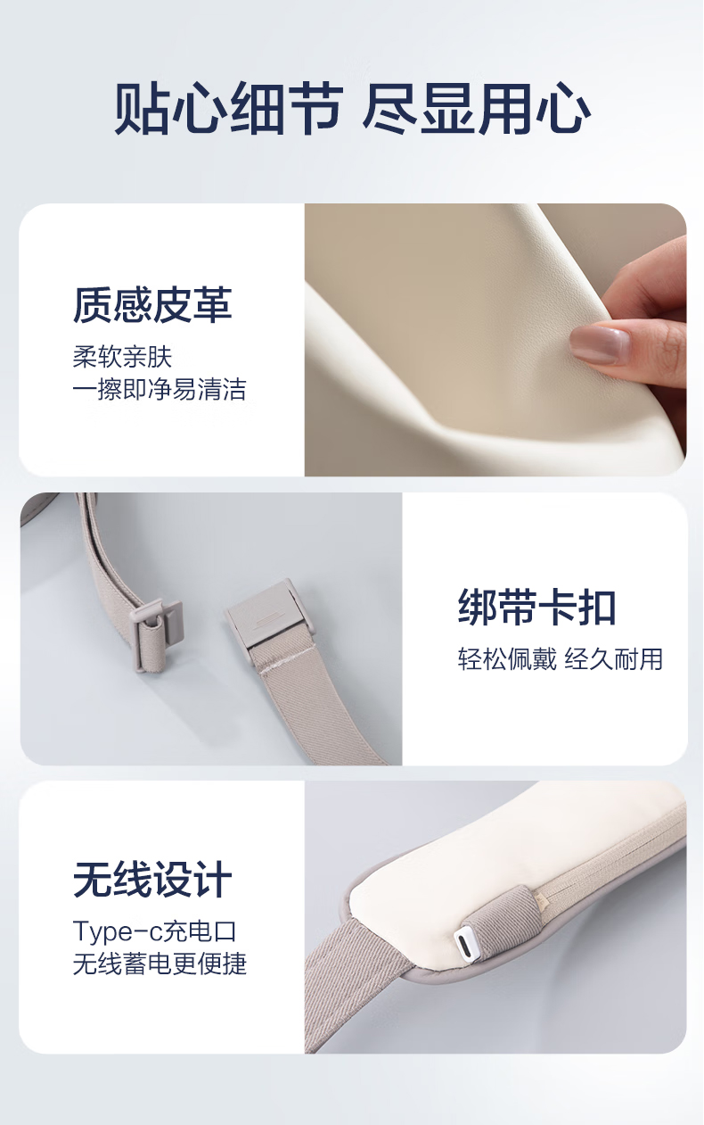 额定功率:16W 额定电压:5V 电源线长:0.5m 产品尺寸:长280mm;宽160mm;高140mm 产品净重:1.22kg 1.NTC安全智控 2.无线小巧便捷3.可拆洗枕套 4.碳纤维热敷 5.10分钟智能定时