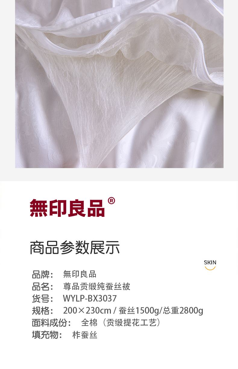 無印良品尊品贡缎纯蚕丝被WYLP-BX3037