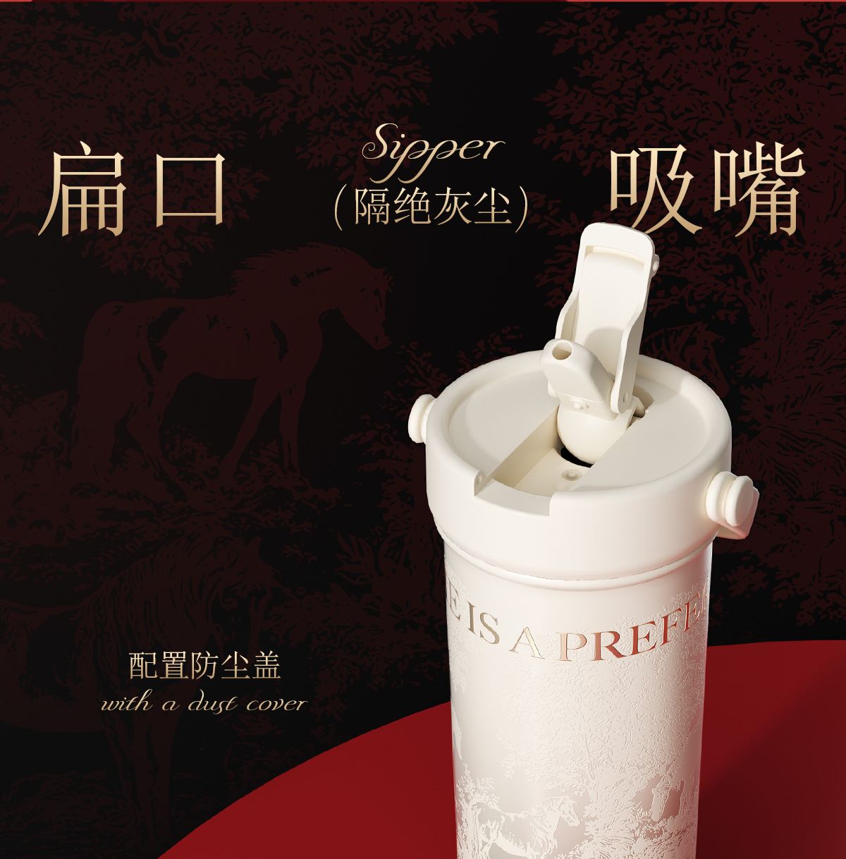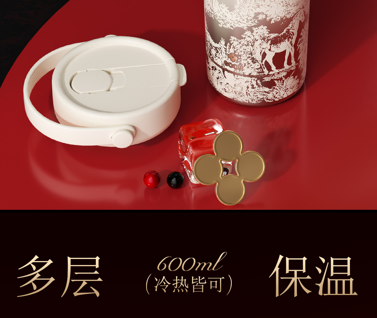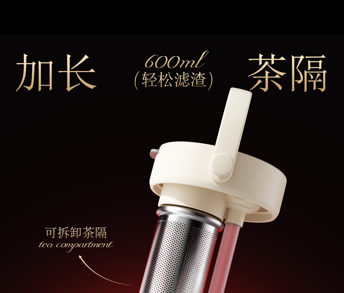 型 号:GM-23AW-B7 颜 色:添鸿运(红色) / 丰米运(米色) 材 质:内胆一奥氏体不锈钢S31603 外壳/茶漏一奥氏体不锈钢S30408 吸管-PP聚丙烯(丙烯均聚物) 杯盖-PP聚丙烯(丙烯与乙烯的聚合物) 密封件-硅橡胶,挂件-蜡绳、亚克力、锌合金珠子 容 量:600ml 单杯尺寸:101*219mm 外箱尺寸:89*89*247mm 1、一杯双饮:痛快敞口喝、精致吸管口不花妆,茶仓泡饮方便 2、密封防漏:360密封,安心无忧,多种场景放心畅饮 3、安心材质:食品级316内胆、长效锁温锁冷 4、黄金容量:600ml贴心续航,满足日常饮水需求! 5、便携随行:自带硅胶提手,出行更便捷 6、来财杯饰:细碎金光点缀,寓意美好