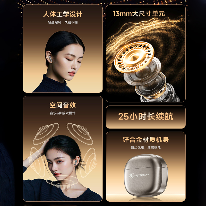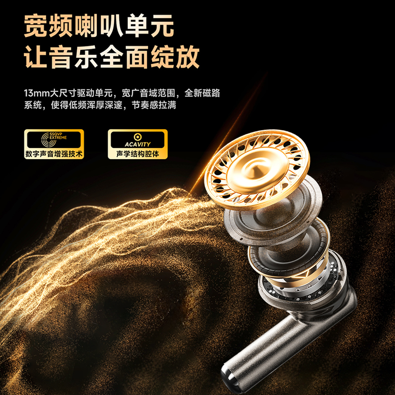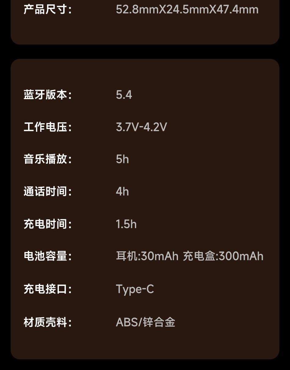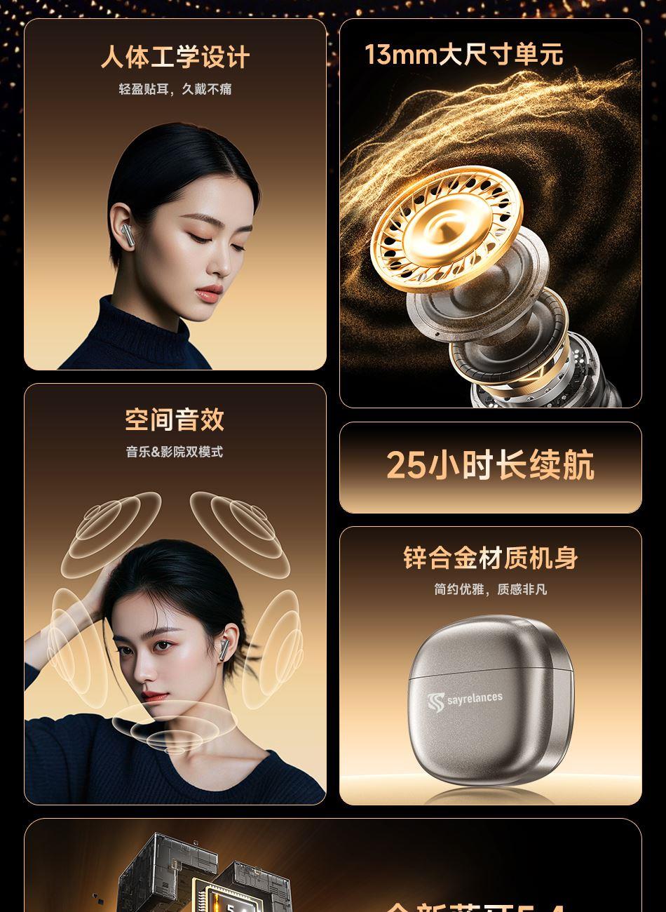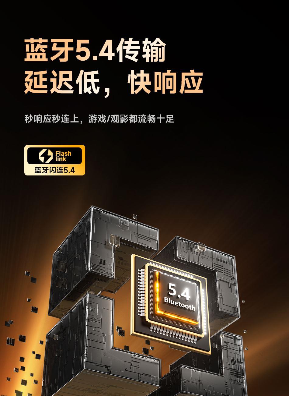 1.用人体工 学设计让佩戴轻盈如翼 45°倾斜如耳舒适贴合耳道曲线; 2.13mm大尺寸驱动单元,宽广音域范围,全新磁路系统,使得低频浑厚深邃,节奏感拉满; 3.搭载立体声增强技术,让你听歌、游戏,都能享受层次感分明、包裹感十足的沉浸空间听感; 4.25小时长续航如影随行的陪伴,搭载低功耗芯片,覆盖全天需求; 5.蓝牙5.4传输延迟低,快响应,秒响应秒连上,游戏/观影都流畅十足;