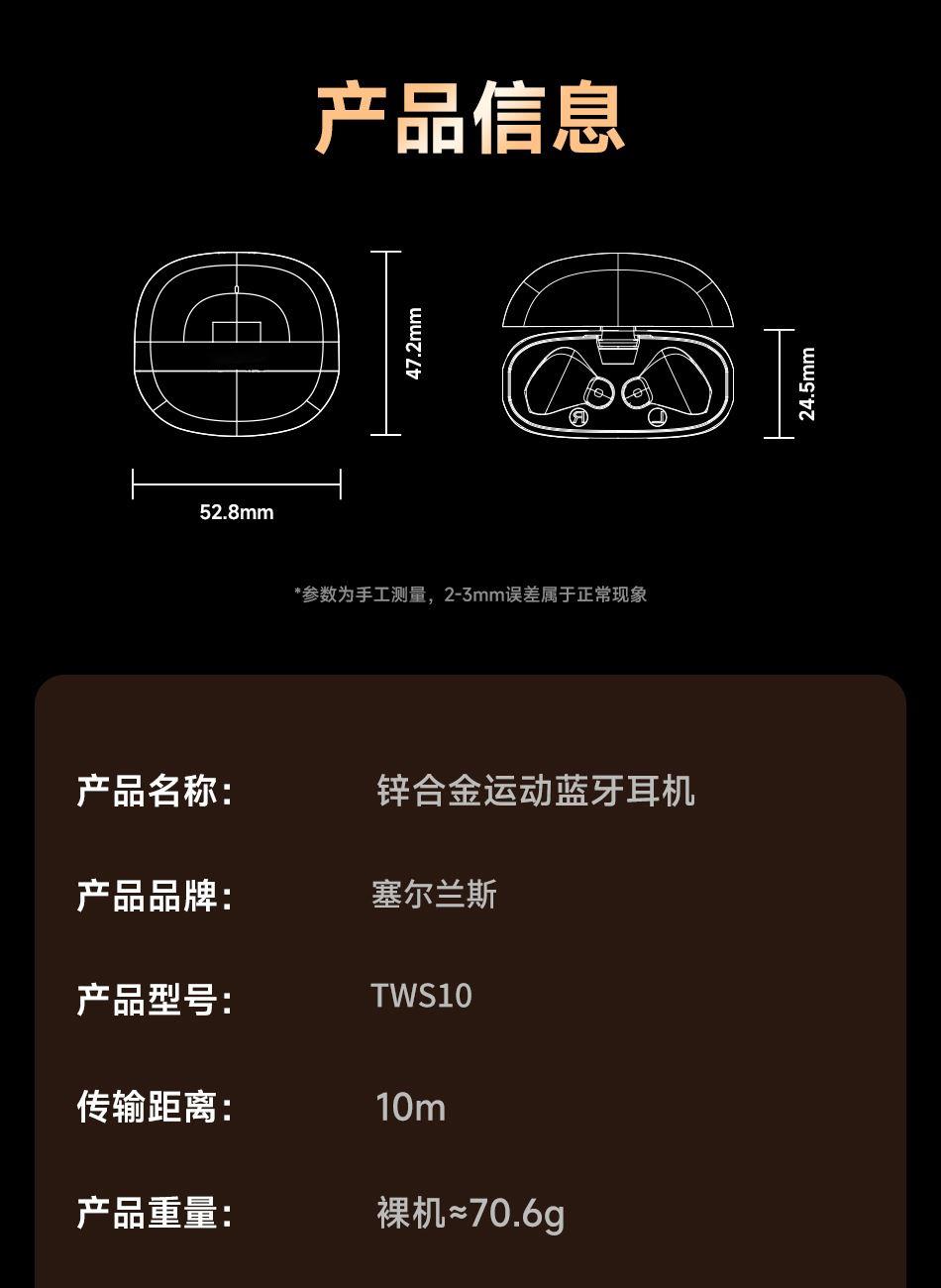 塞尔兰斯锌合金运动蓝牙耳机TWS10