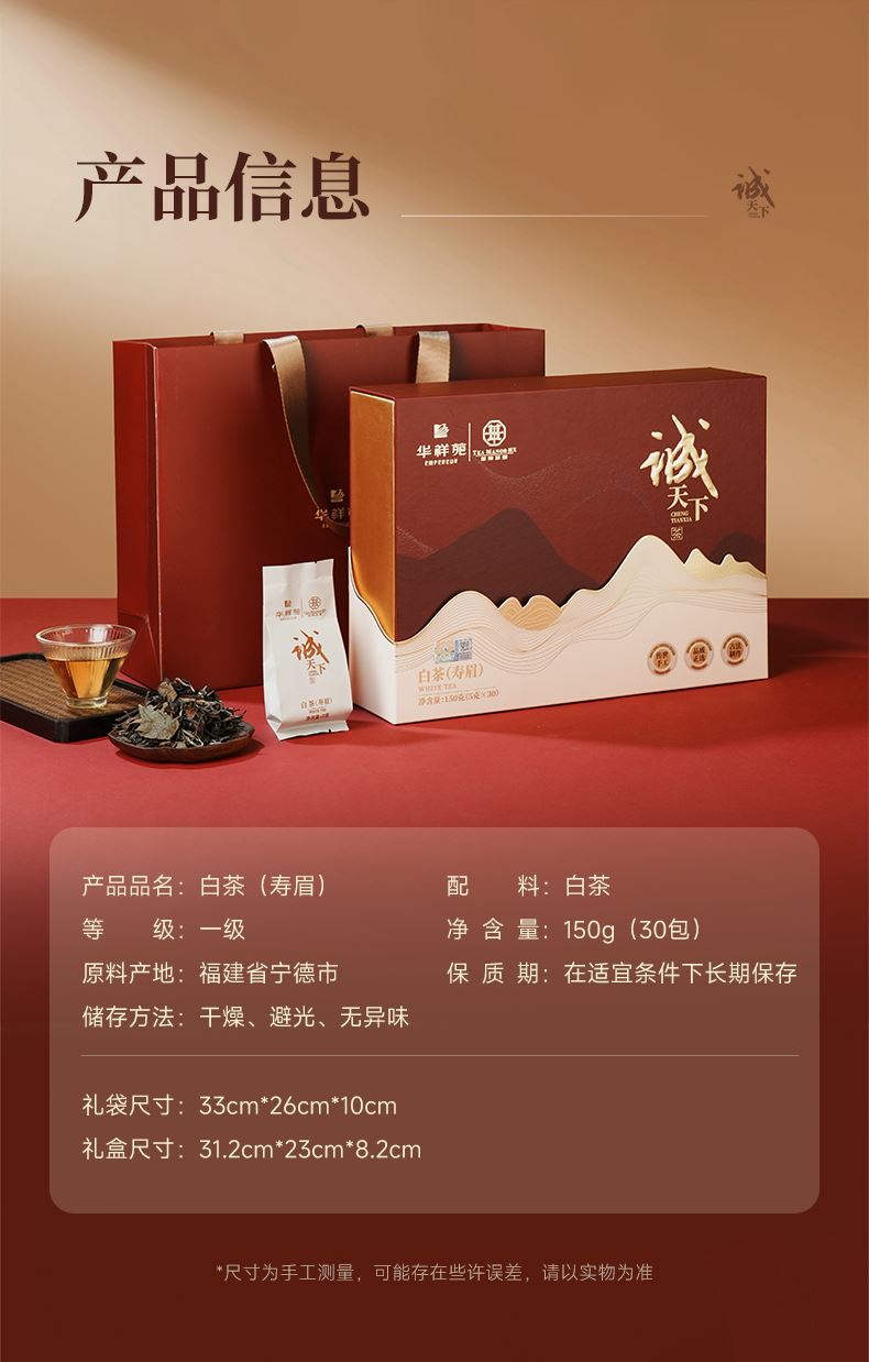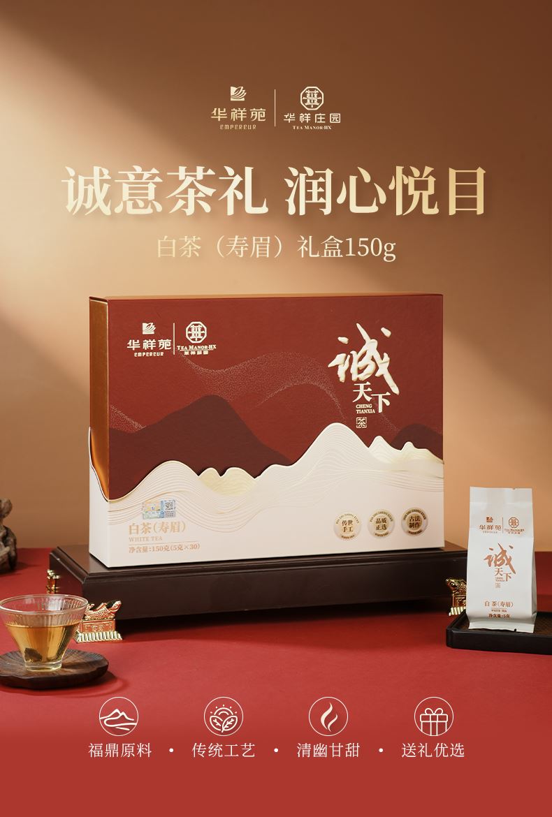 华祥苑-诚天下150g福鼎老白茶叶年份寿眉年货礼赠盒套装春节