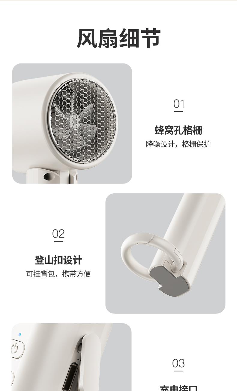 *90度角度折叠,9950转超强风 *便携登山扣设计,带半导体制冷 *材质:ABS *产品尺寸:56*58*206mm *彩盒尺寸:60*57*184mm *外箱尺寸:38.5*30.2*38.5 cm *单个净重/毛重:168g/216.7g *整箱净重/毛重:13kg/14.6kg