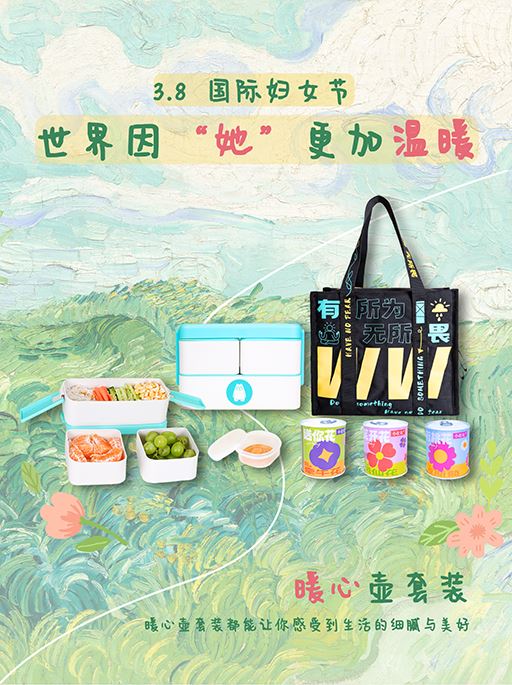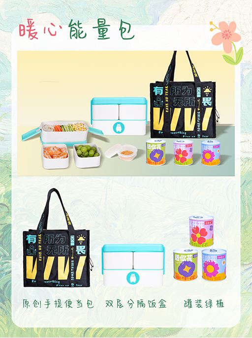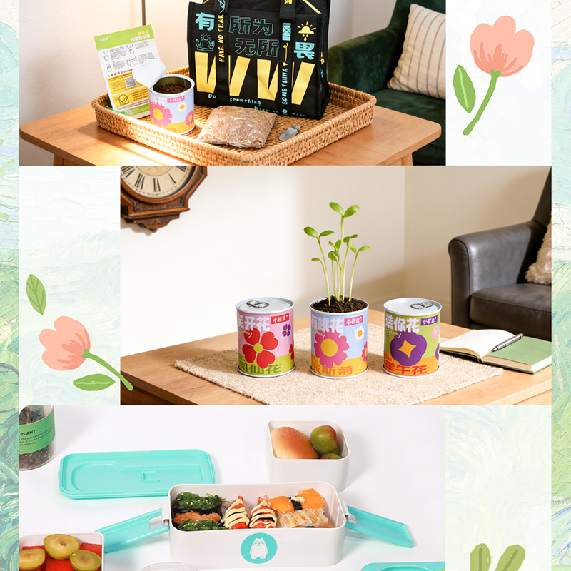 原创手提便当包*1,220*250*130mm 双层分隔饭盒*1,180*123*87mm 罐装绿植*1,(凤仙花/牵牛花/波斯菊)