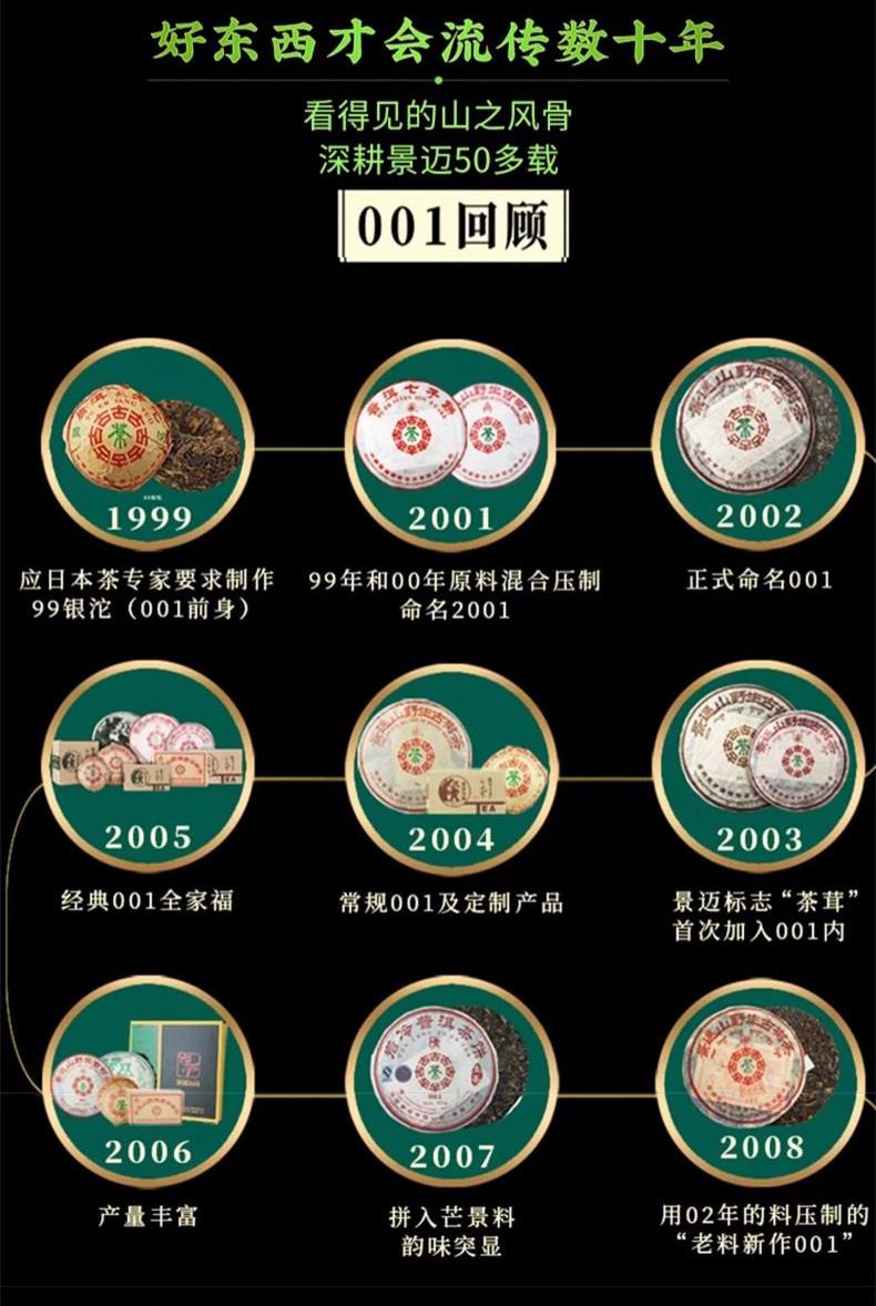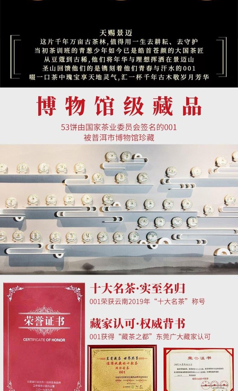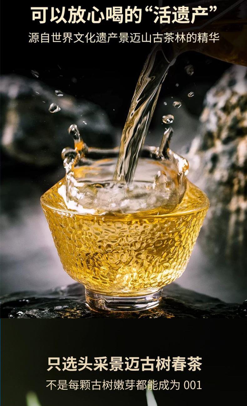 普洱茶(生茶)紧压茶 净含量:200克 产品工艺:普洱生茶 配料:云南大叶种晒青茶 产地:中国云南 世界文化遗产景迈山1号 始于1999年,24载从未缺席 只选景迈山核心产区明前古树一芽一叶春茶 芽头饱满肥硕多毫油润诱人真材实料看得到