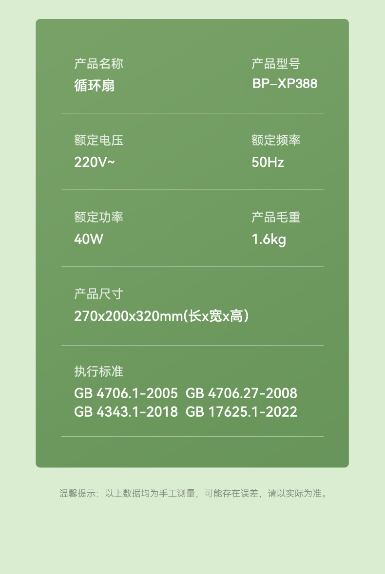豹牌桌面空气循环扇BP-XP388