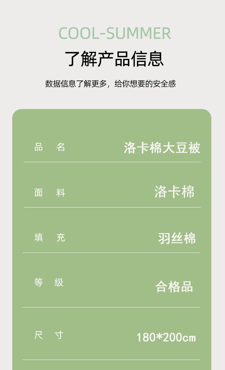 规格:180*200cm 面料:洛卡棉 填充:羽丝棉 克重:1200g 产品特点: 1.洛卡棉面料经过特殊处理,具有良好的色牢度。 2.洛卡棉面料耐水性好,手感柔软,亲肤性好。 3.洛卡棉具有良好的透气性,具有防霉抗皱的特性。