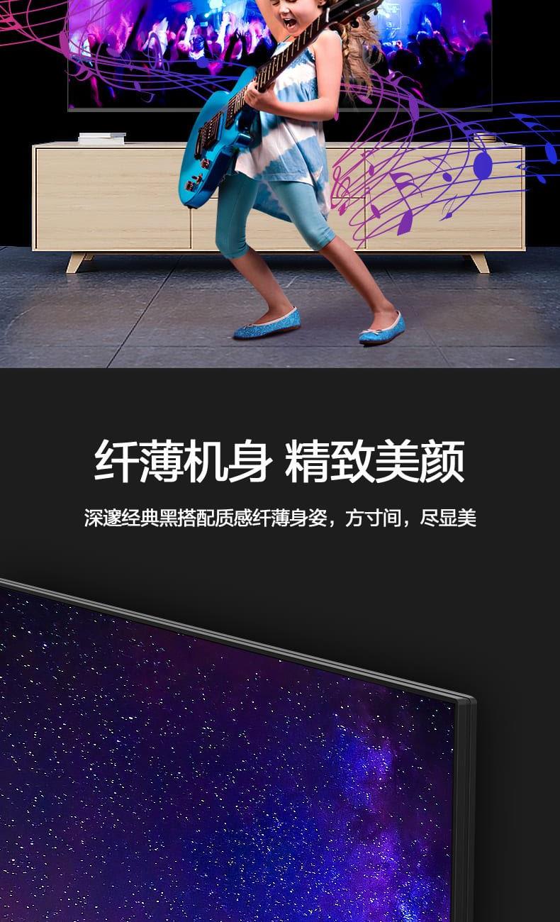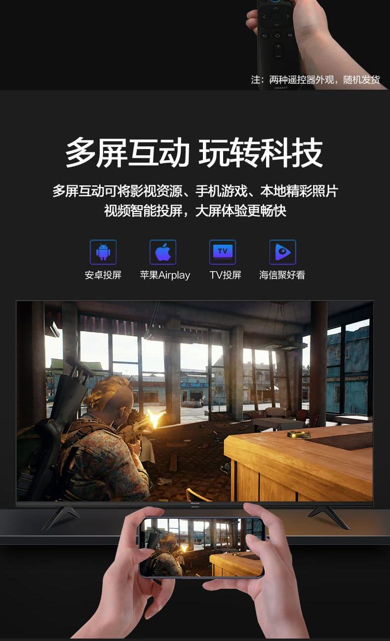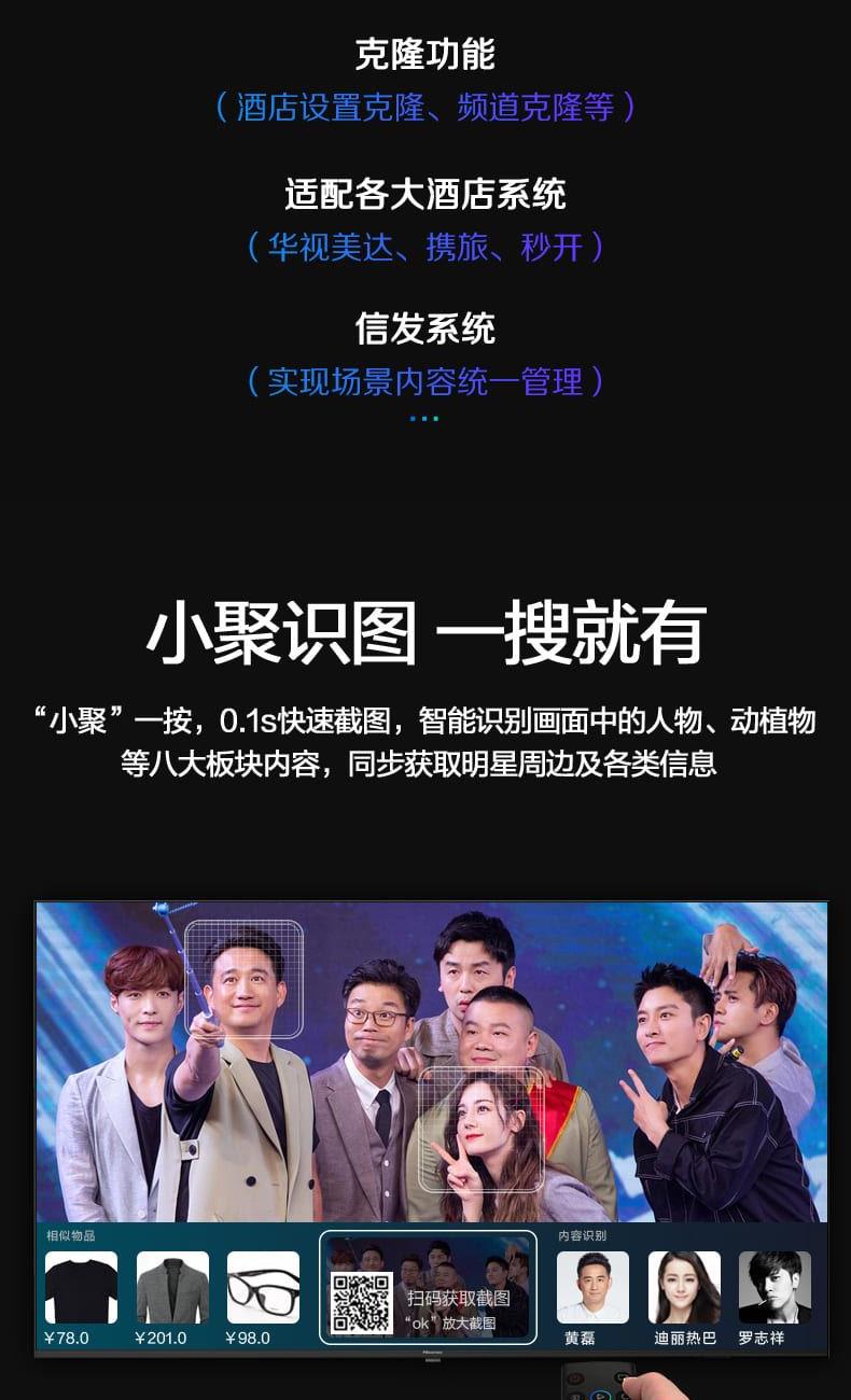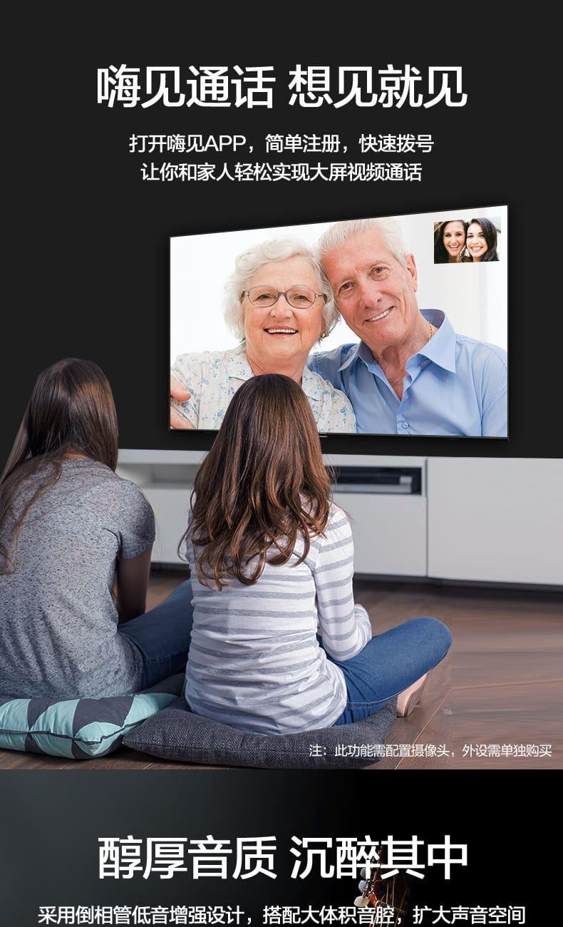 VIDAA 6 系统 + 小聚语音:开机快、无广告,语音搜片、查天气、控制家电,老人小孩都会用。
