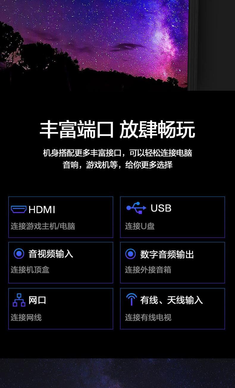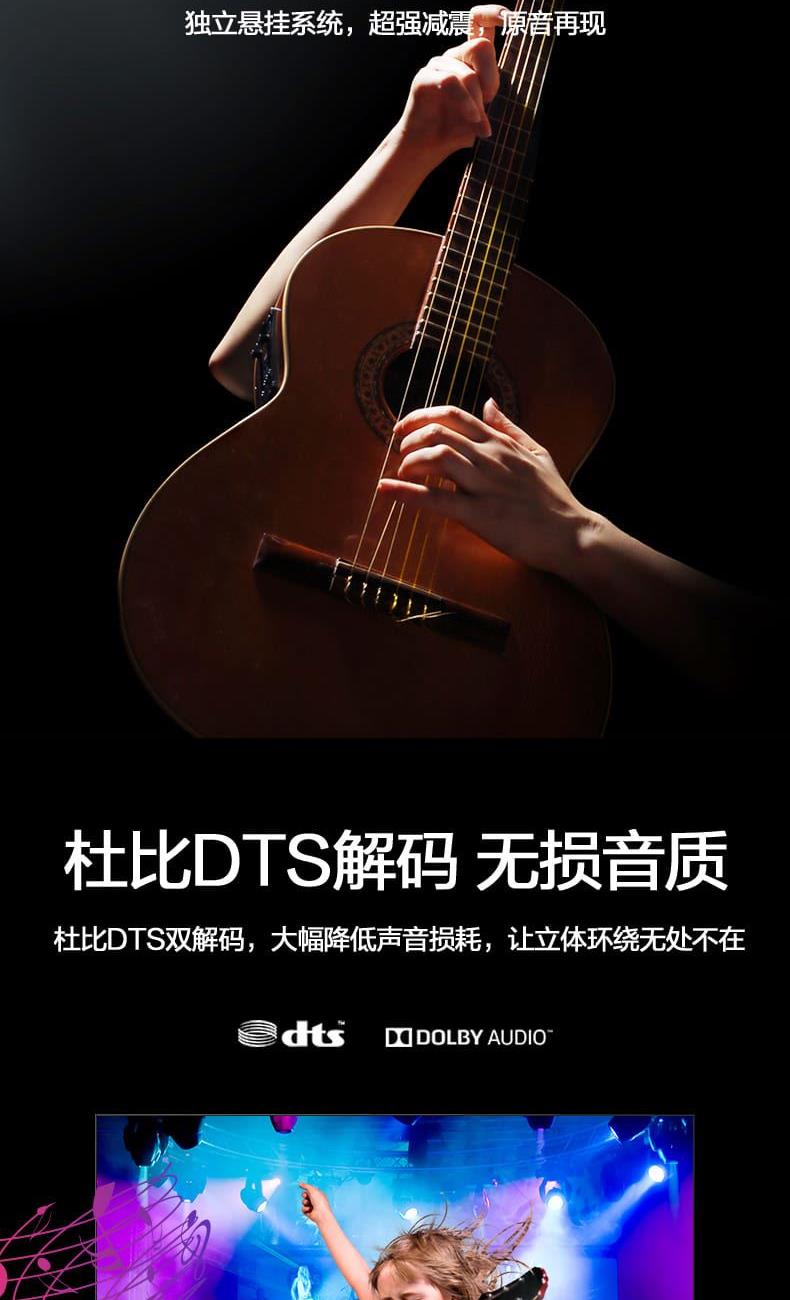 杜比 + DTS 双解码:2 个扬声器,声音更立体,看大片有影院感。