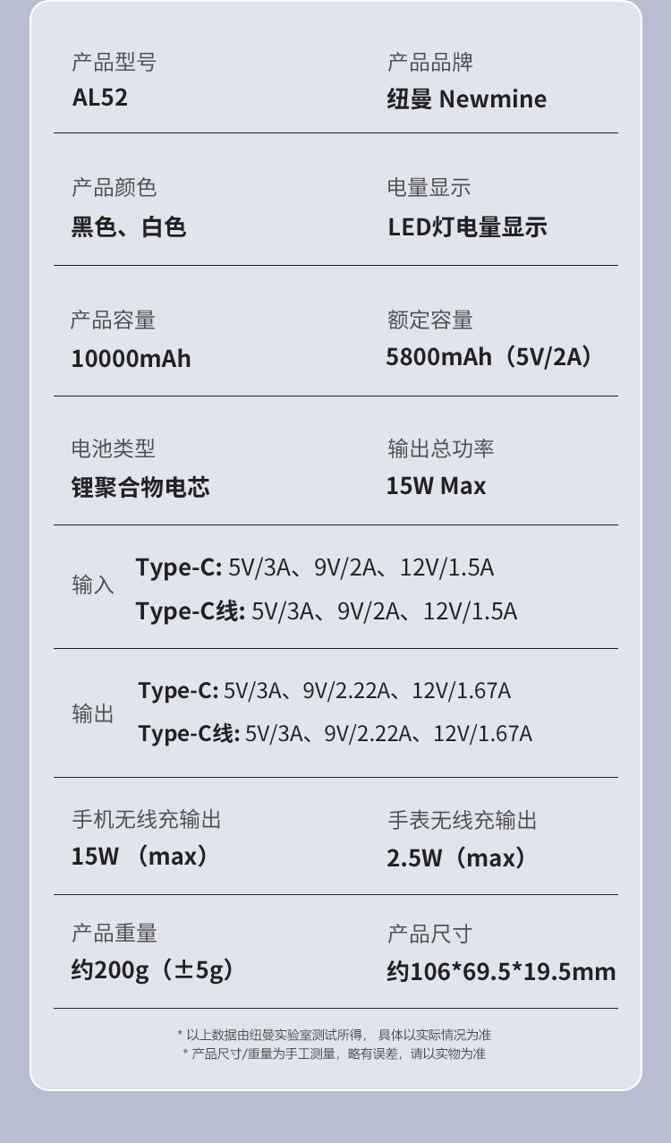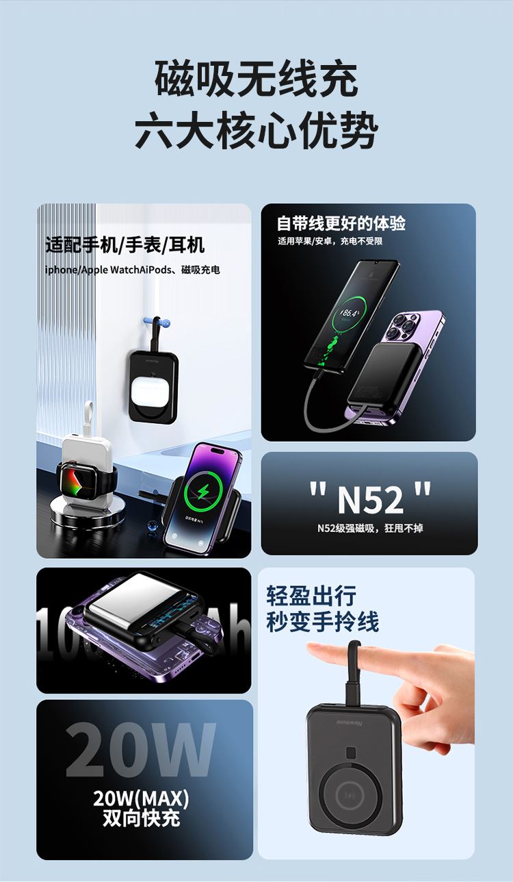 纽曼一万毫安磁吸充电宝AL52可上飞机3C