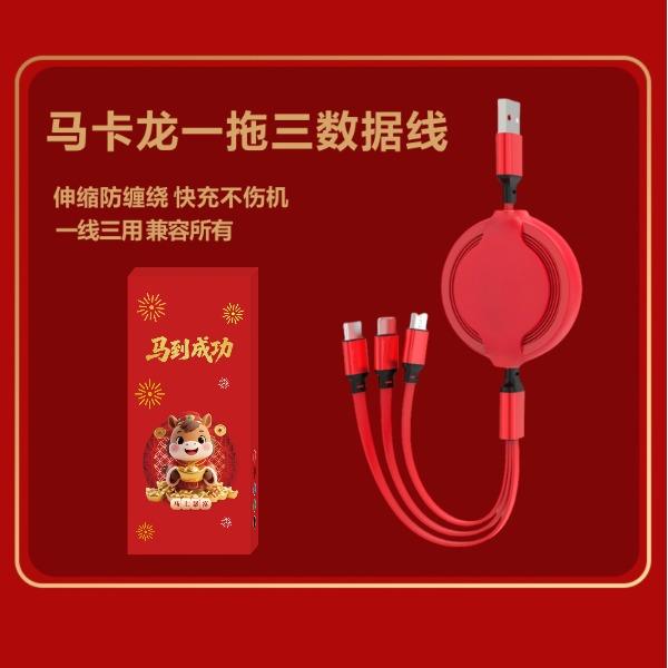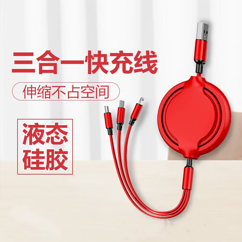 遥里逊马卡龙一拖三伸缩数据线三合一充电线YLX-313