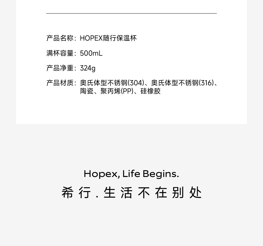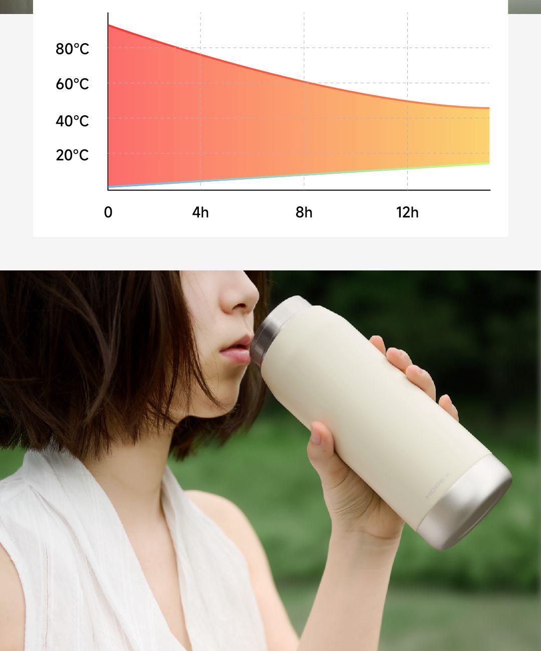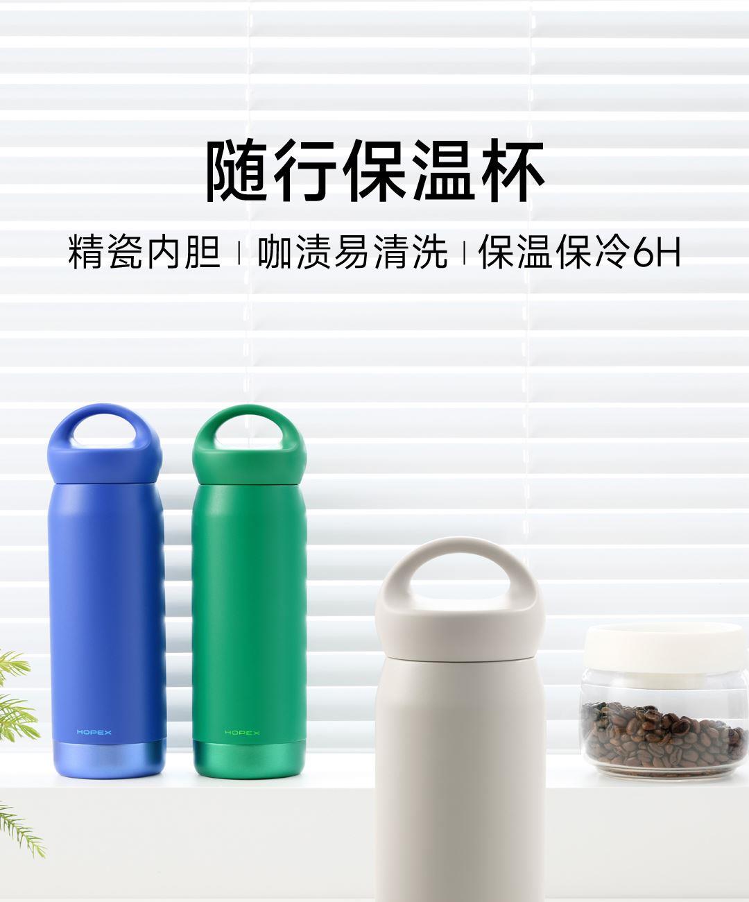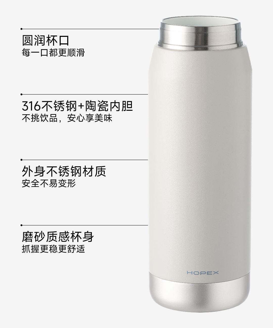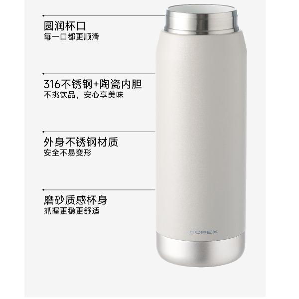 SUS316L食用材质 釉面陶瓷覆层内胆 500mL日常容量 开盖直饮方便快捷 手拎式旋钮盖