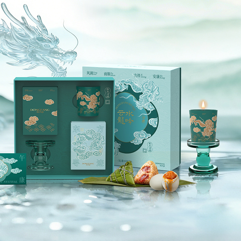 配置 · ① 香氛蜡烛杯×1只(乌木沉香-约170g) ② 玻璃烛台架×1个 ③ 发芽糙米粽×2只(100g/只) ④ 超大海鸭蛋×2只(80g/只) ⑤ 端午礼卡×1份 ⑥ 云水龙吟礼盒×1套(含袋) 尺寸 · 290×290×95mm