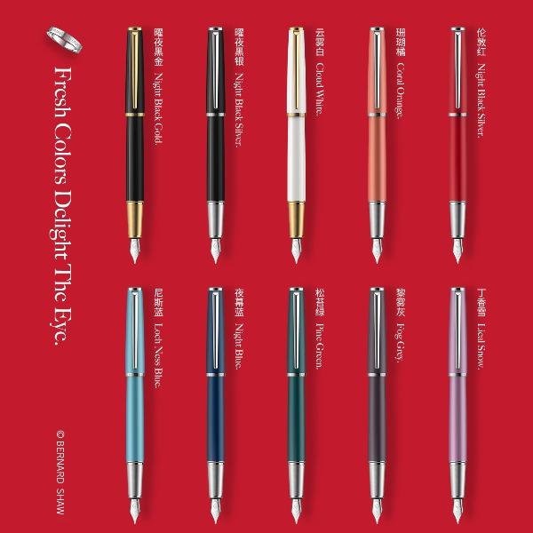 型号:星耀系列墨水笔 类型:螺纹上墨式墨水笔 重量:墨水/宝珠笔31g/35g 颜色分类:曜夜黑金曜夜黑银黎雾灰松苔绿夜幕蓝伦敦红珊瑚橘丁香紫尼斯蓝云雾白 书写粗细:F尖 套餐类型:官方标配 包装方式:鸿运笔记本礼盒装 适用场景:送礼书写 钢笔笔尖成分:不锈钢 笔尖种类:标准型 适用人群:文艺青年 上墨方式:旋转吸墨 笔杆材质:金属笔尖 嵌入方式:明尖 笔身纹理:磨砂 墨水材质:非碳素墨水