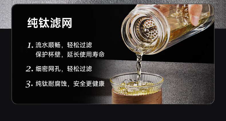 材质:杯盖-钛/杯身-高硼硅玻璃 密封圈:硅橡胶 颜色:云海雾凇/纯净冰川 杯盖样式:旋盖 容量:380ml