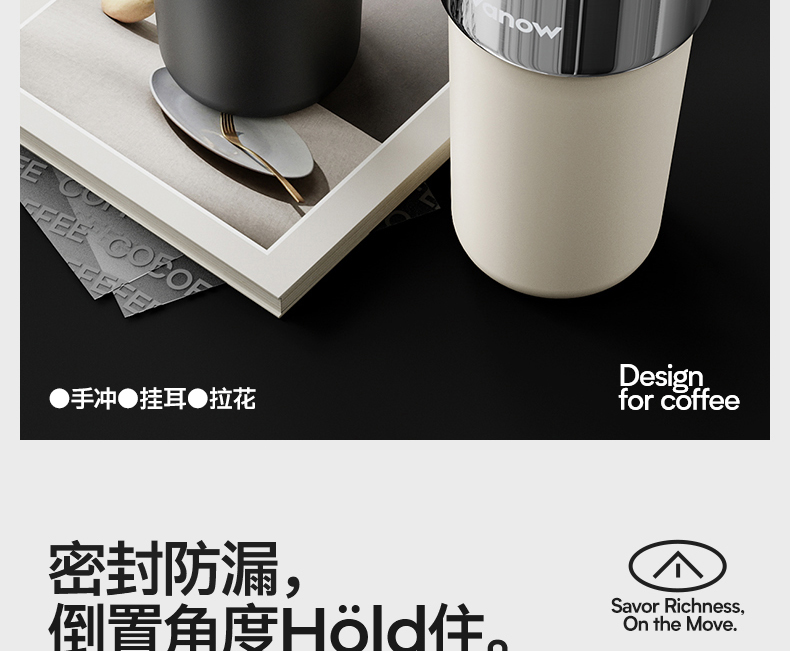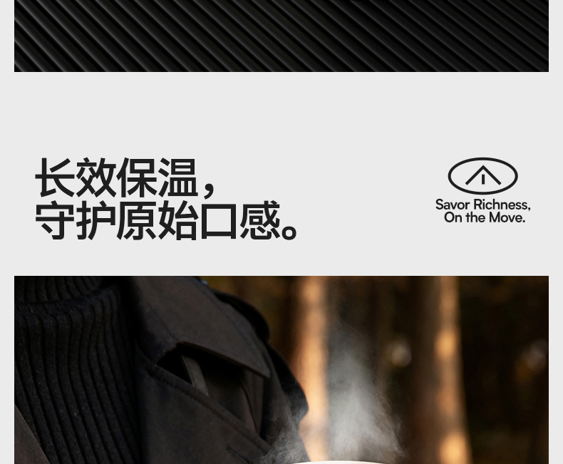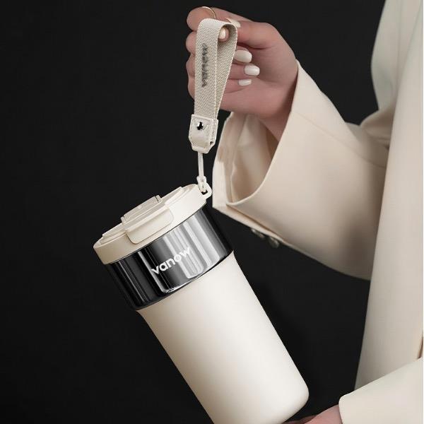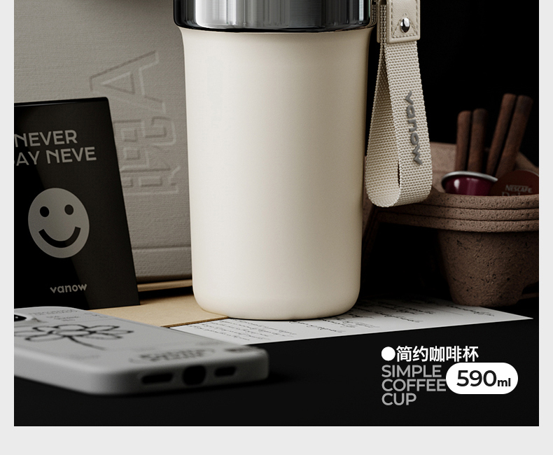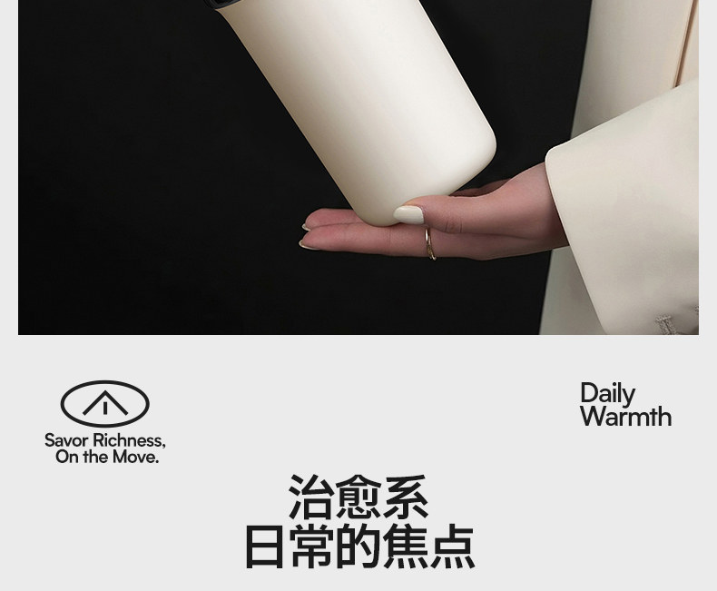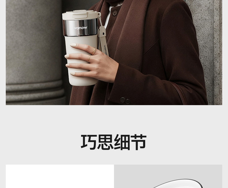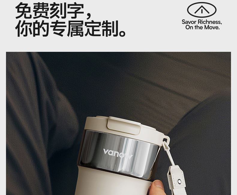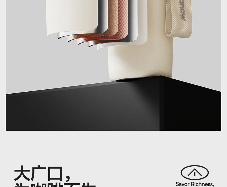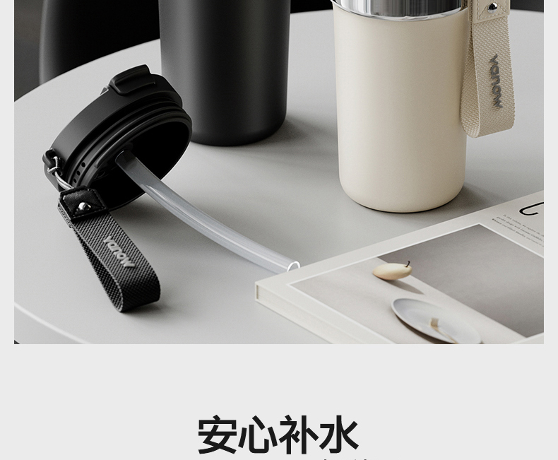型号:VO-JY59WKF、VO-JY59WKF-C 颜色:月光白,夜慕黑 容量:590ml 尺寸:89*74*185mm 材质:SUS316不锈钢内胆/陶瓷覆层内胆,硅橡胶,pp 1.三饮切换,喝法不重样 2.长效保温,守护原始口味 3.密封防漏,倒置角度hold住 4.柔软触感,高颜便携提绳