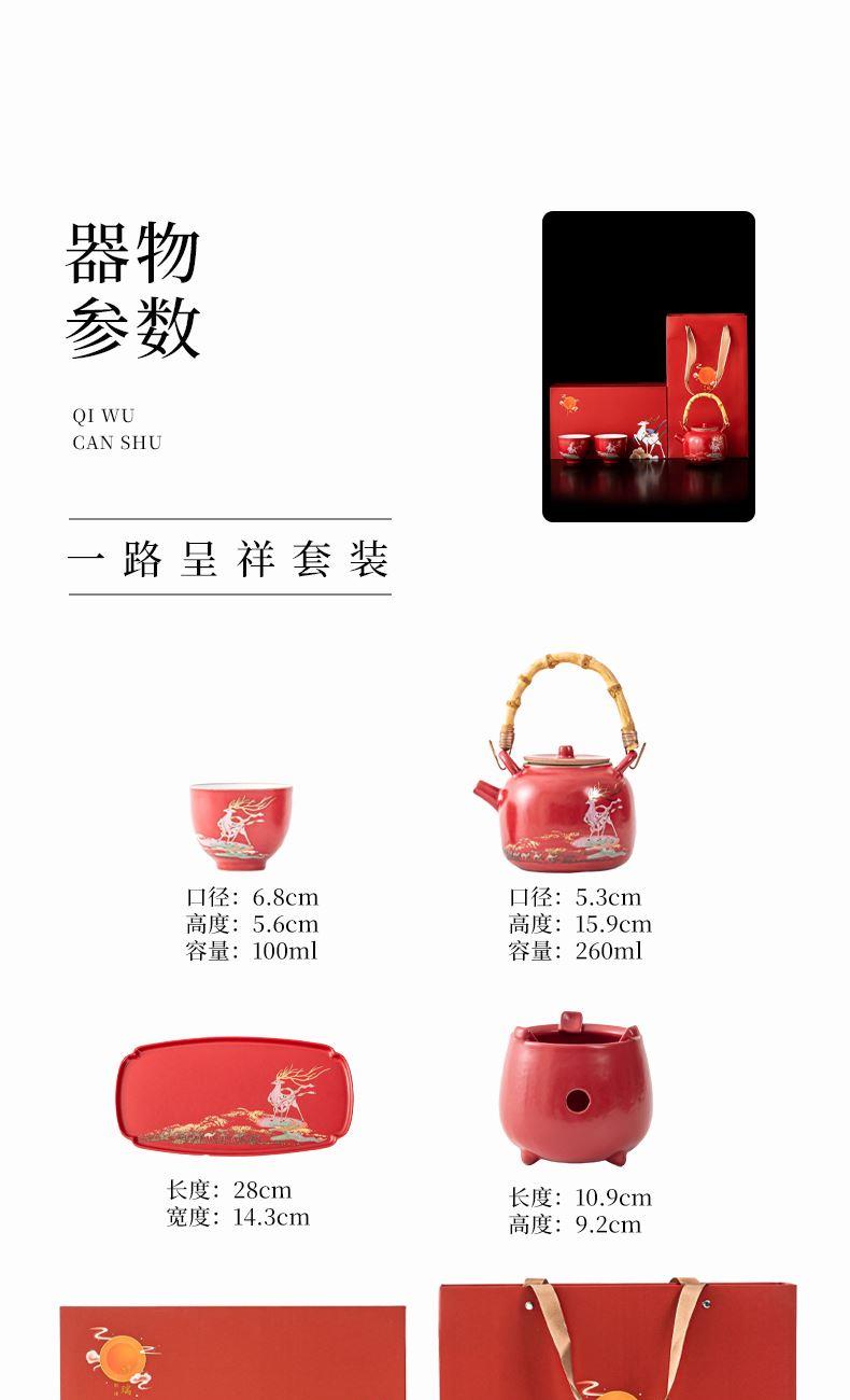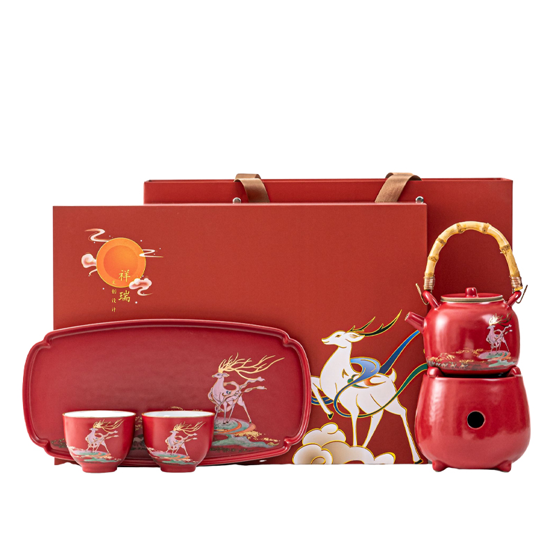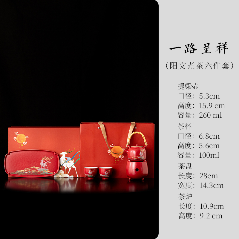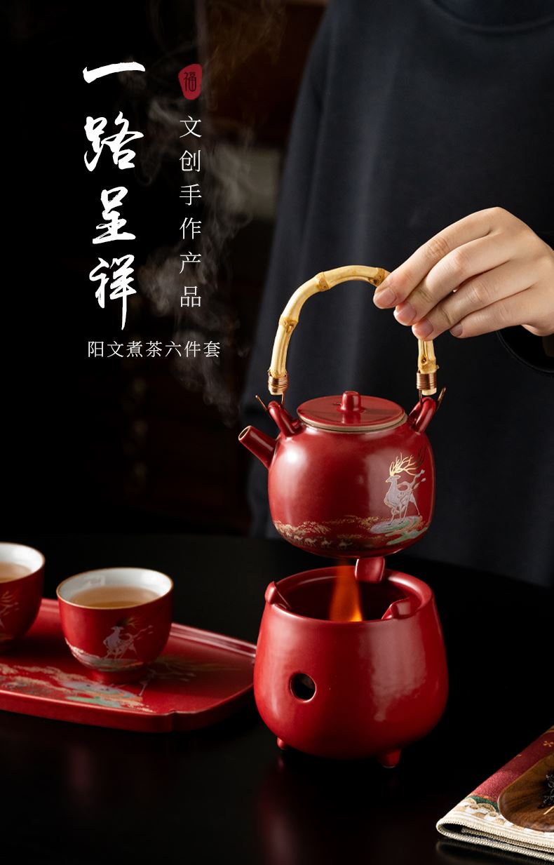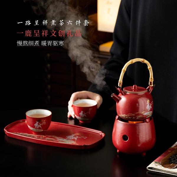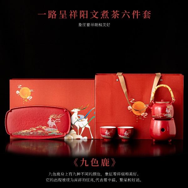 尾桥下窑敦煌文创一鹿呈祥煮茶壶茶具套装开门红伴手礼年会礼品
