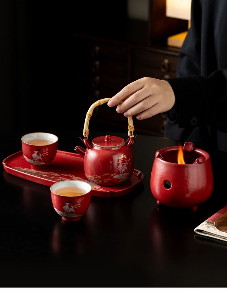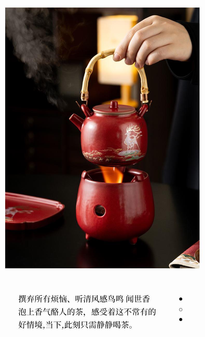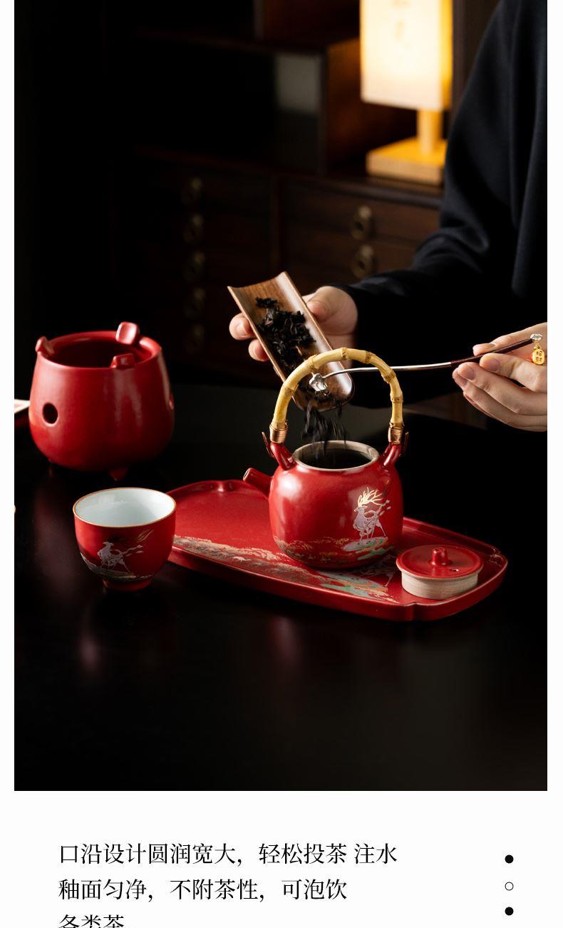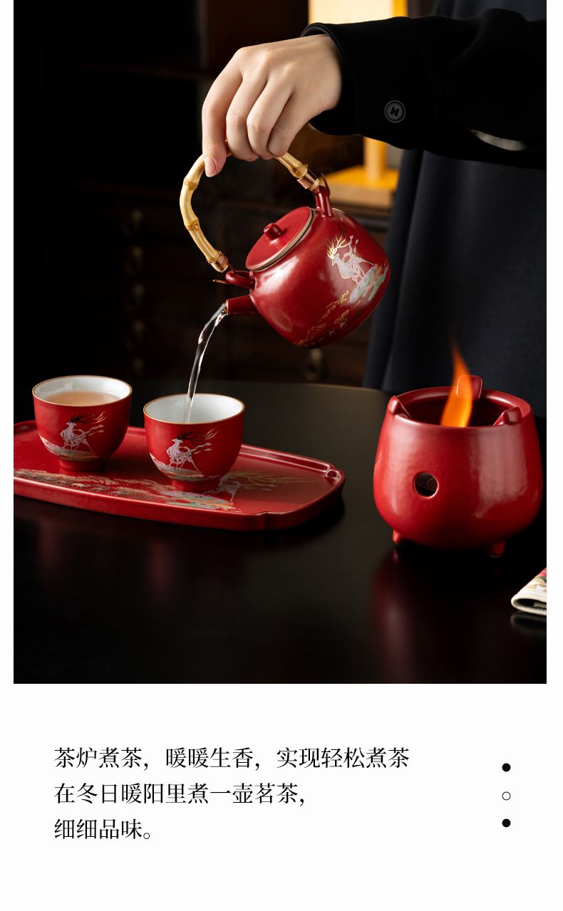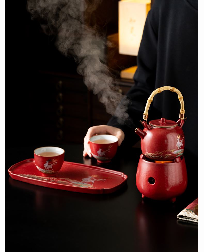 尾桥下窑敦煌文创一鹿呈祥煮茶壶茶具套装开门红伴手礼年会礼品