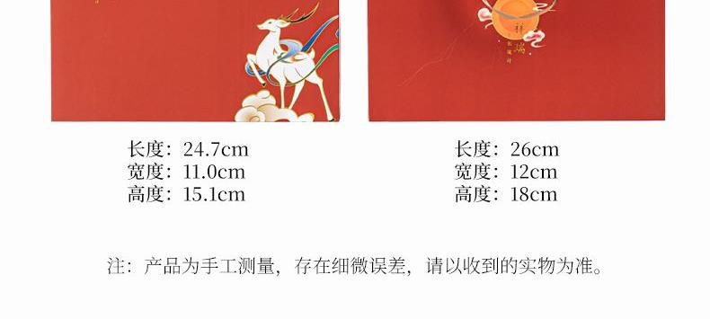 茶壶口径:5.3cm高度:15.9cm容量:260ml, 茶杯口径:6.8cm高度:5.6cm容量:100ml, 茶炉长度:10.9cm高度:9.2cm, 干泡盘长度:28cm宽度:14.3cm, 礼盒长度:24.7cm宽度:11.0cm高度:15.1cm。