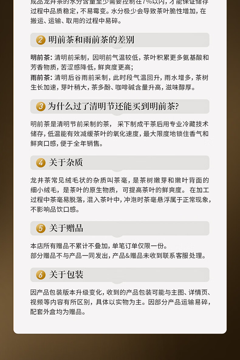 狮峰 商品编号:100027771414 保质期:12个月 储存方法:避光 密封 防潮 防异味 包装规格:1盒 包装形式:礼盒装 采摘要求:一芽一叶 一芽两叶 茶叶等级:精品 采摘时间:明前 采摘地:浙江 产地/产区:西湖龙井一级产区 包装清单:礼盒、手提袋