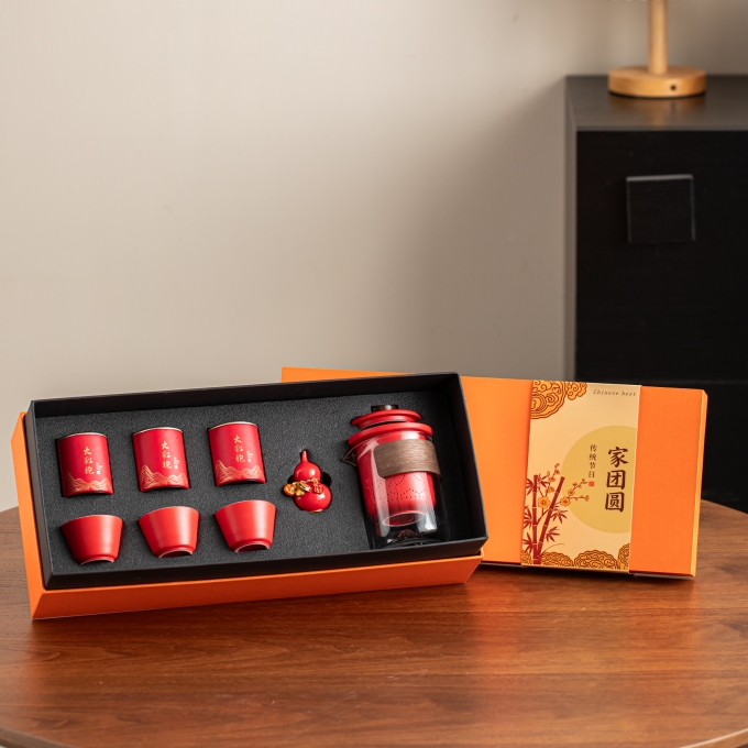 开门红年会礼品家团圆快客茶具摆件八件套