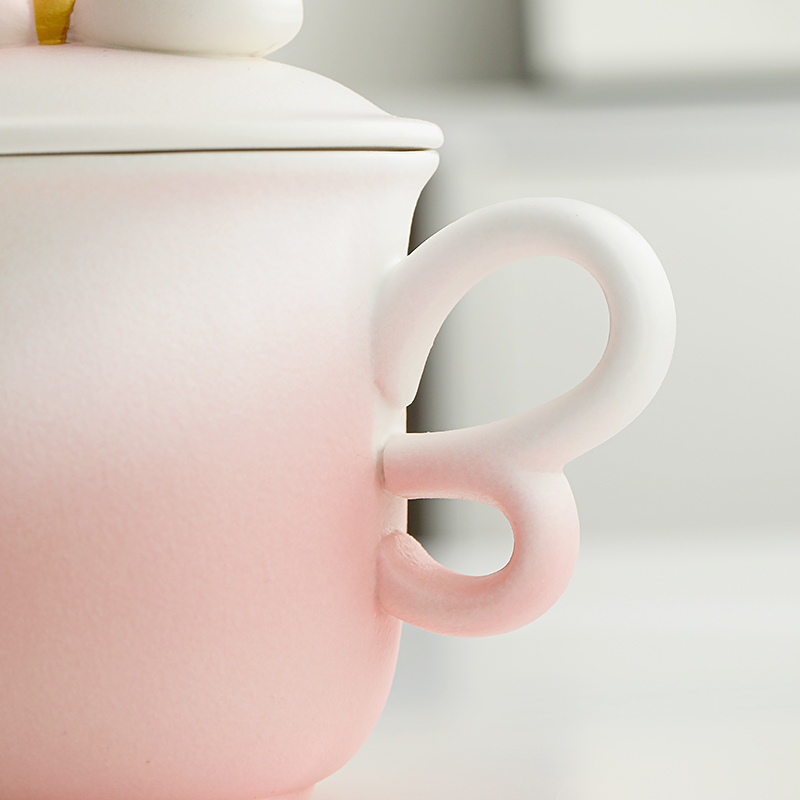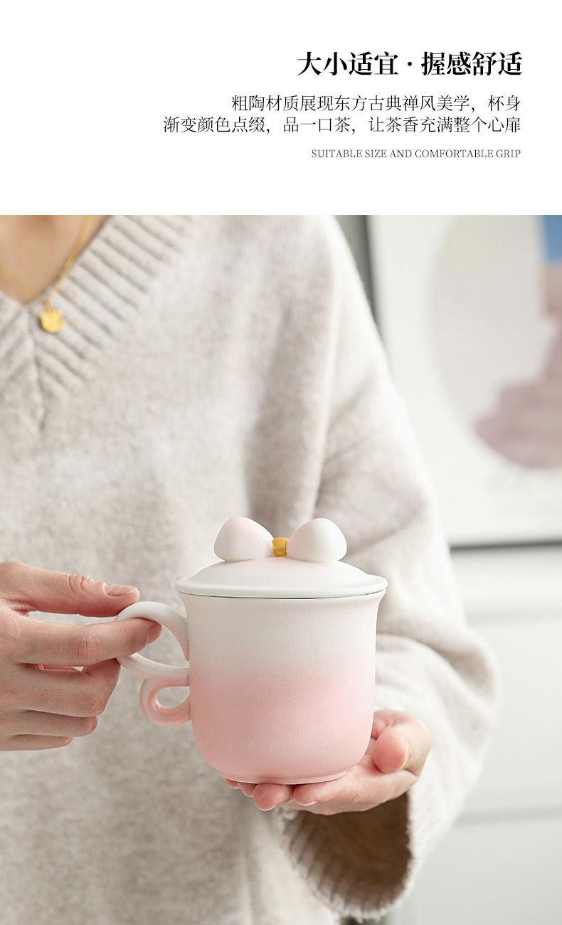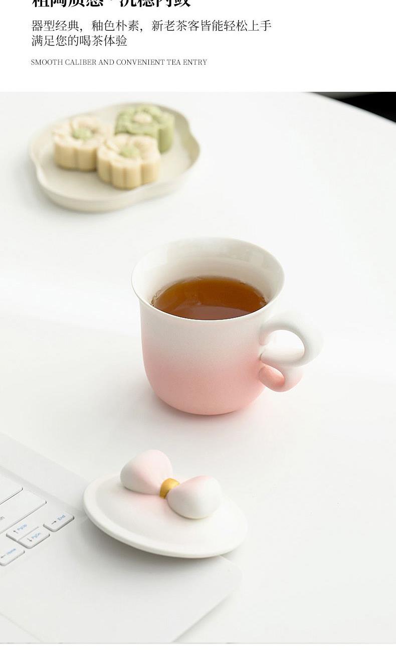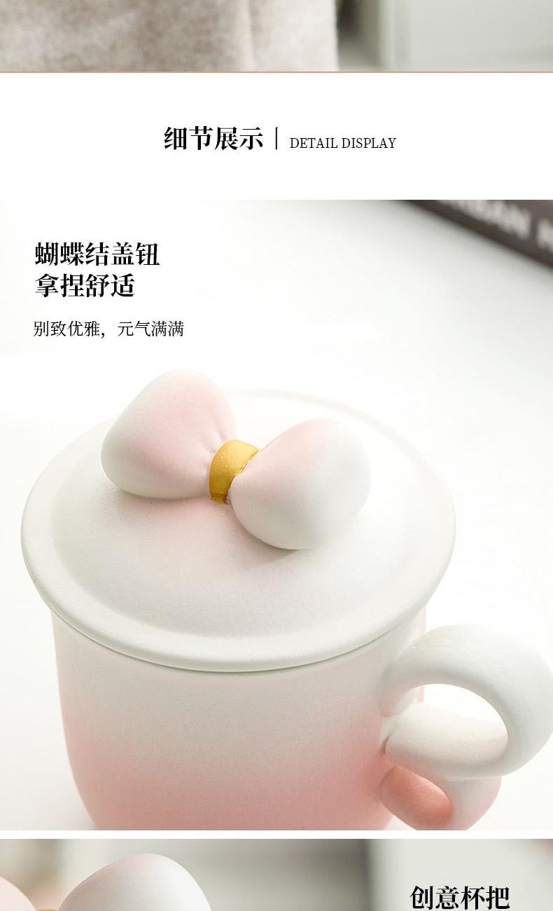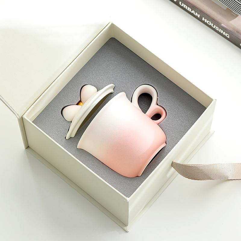 融合渐变色彩、蝴蝶把手(3/8艺术字)、蝴蝶结盖粒及粗陶材质,新颖时尚与东方古典美学结合,带来愉悦的喝茶体验。 材 质:原矿陶 容 量:茶杯250ml 配 置:两件式杯一套,含提手礼盒包装。