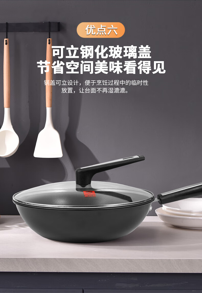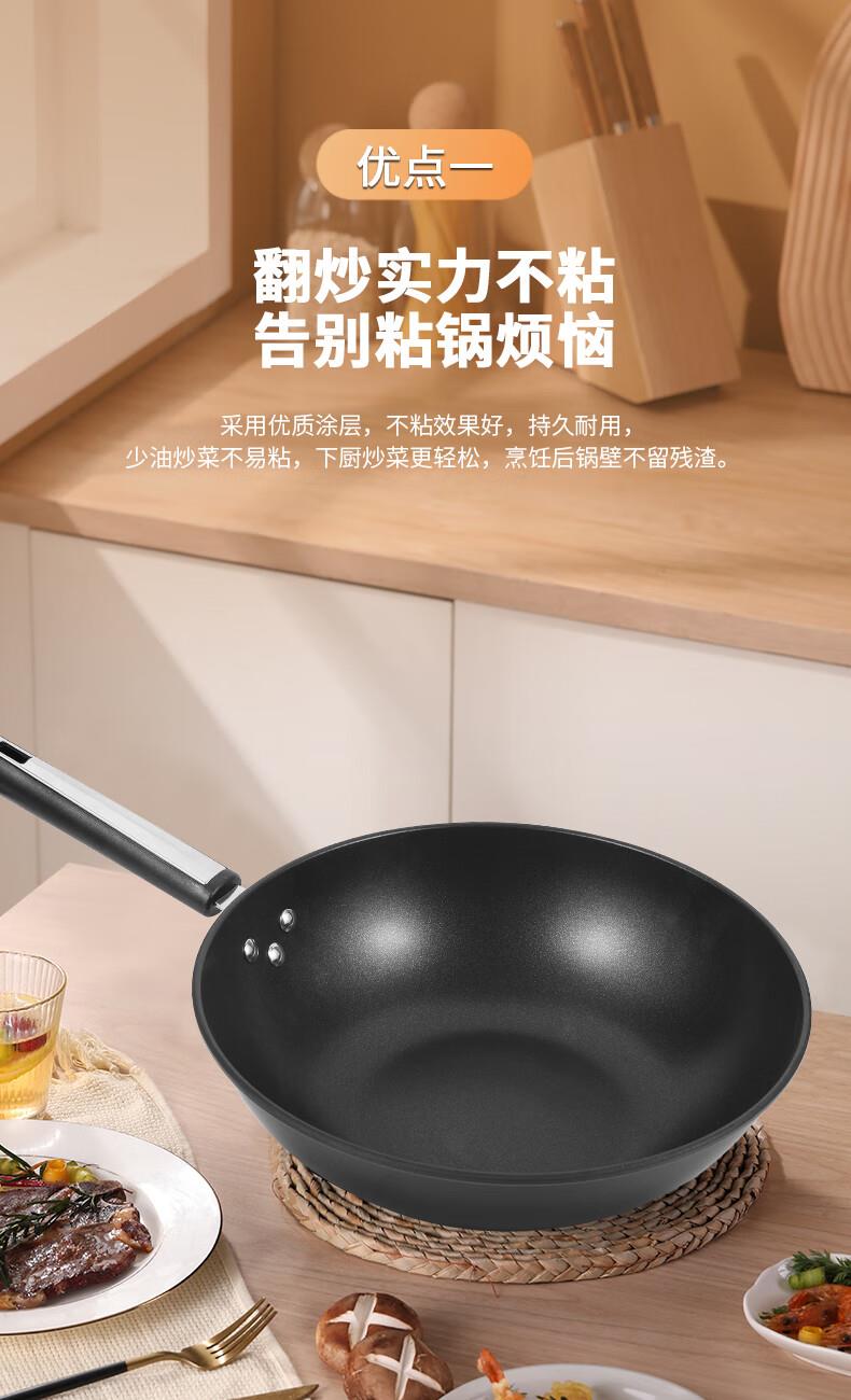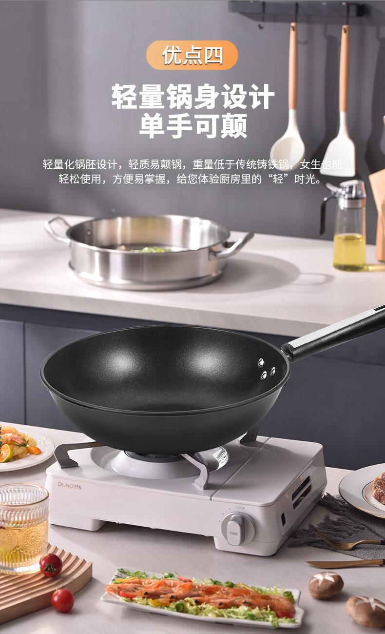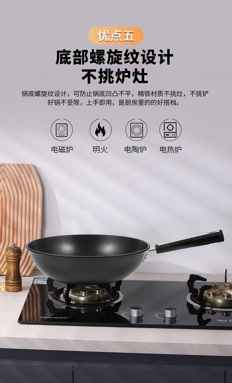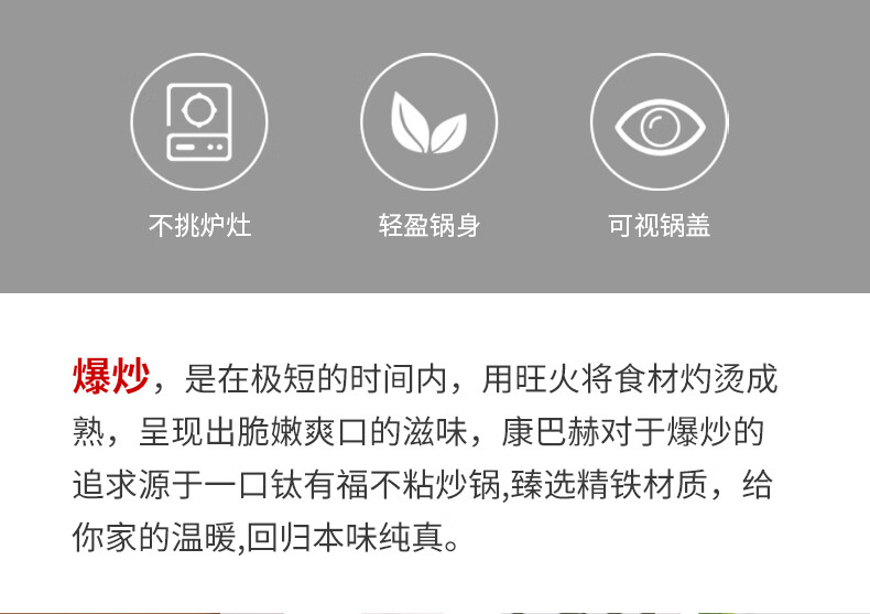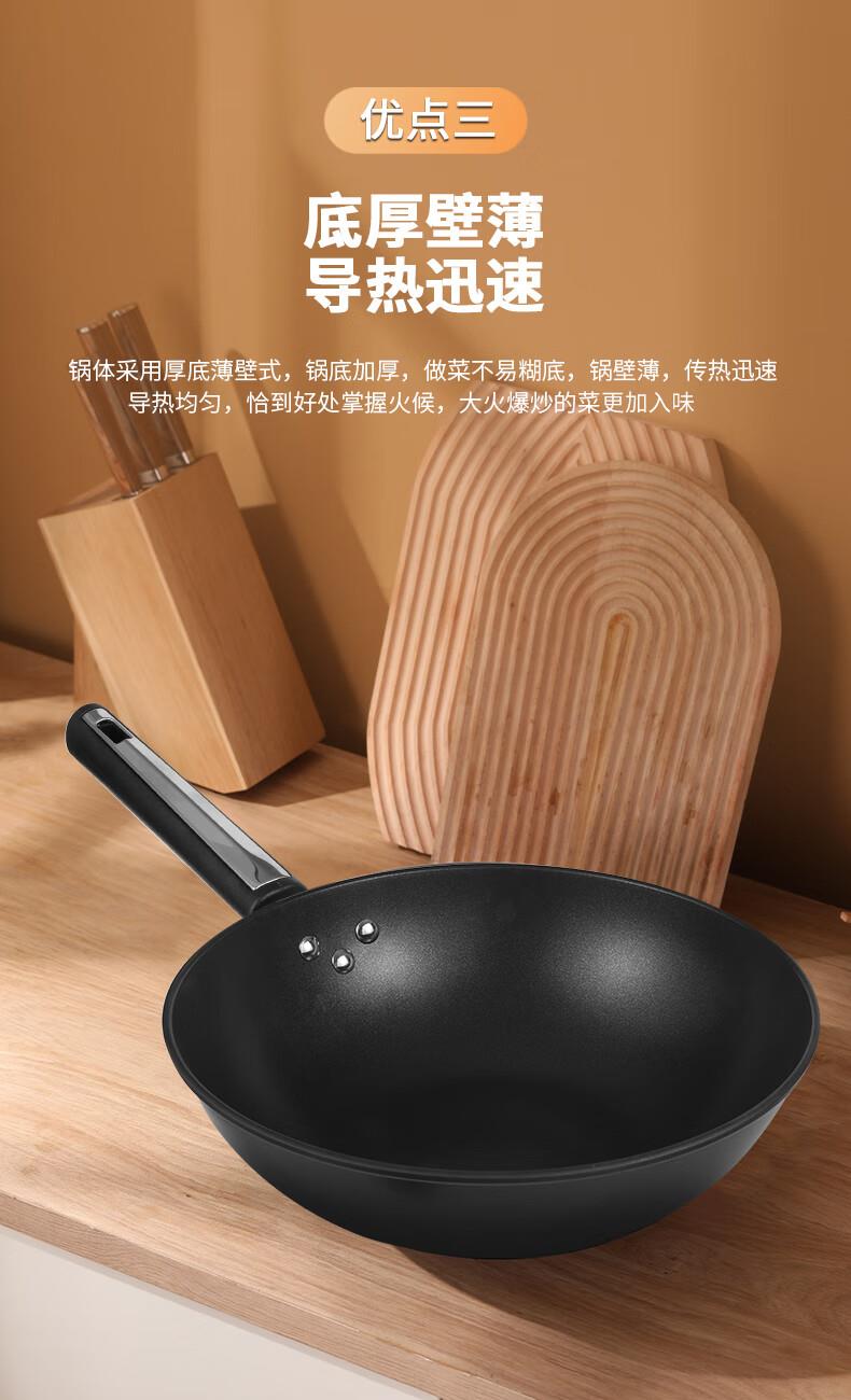 规格:32cm 净重:2.2kg 包装尺寸:51*40*79.8cm ◎健康钛元素下厨安心吃的放心:钛是公认的健康金属材质,稳定性强。在烹饪过程中不会析出有害物质。 ◎翻炒实力不粘告别粘锅烦恼:采用优质涂层,不粘效果好,持久耐用,少油炒菜不易粘,下厨炒菜更轻松,烹饪后钢壁不留残渣。 ◎轻油少烟清新厨房烹饪随心无烦恼:轻奢厨具烹美食,轻油更少烟,告别浓重油烟,还您清新厨房生活需要低调的品质感 ◎底厚壁薄导热迅速:锅体采用厚底薄壁式,锅底加厚,做菜不易糊底,锅壁薄,传热迅速导热均匀,恰到好处掌握火候,大火爆炒的菜更加入味 ◎轻量锅身设计,单手可颠:轻量化锅胚设计,轻质易颠锅,重量低于传统铸铁锅,女生也能轻松使用,方便易掌握,给您体验厨房里的“轻”时光。 ◎底部螺旋纹设计,不挑炉灶:锅底螺旋纹设计,可防止锅底凹凸不平,精铁材质不挑灶,不挑铲好锅不受限,上手即用,是厨房里的的好搭档。