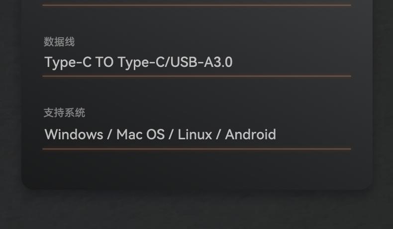 数据线:Type-C TO Type-C/USB-A3.0(内附数据线)