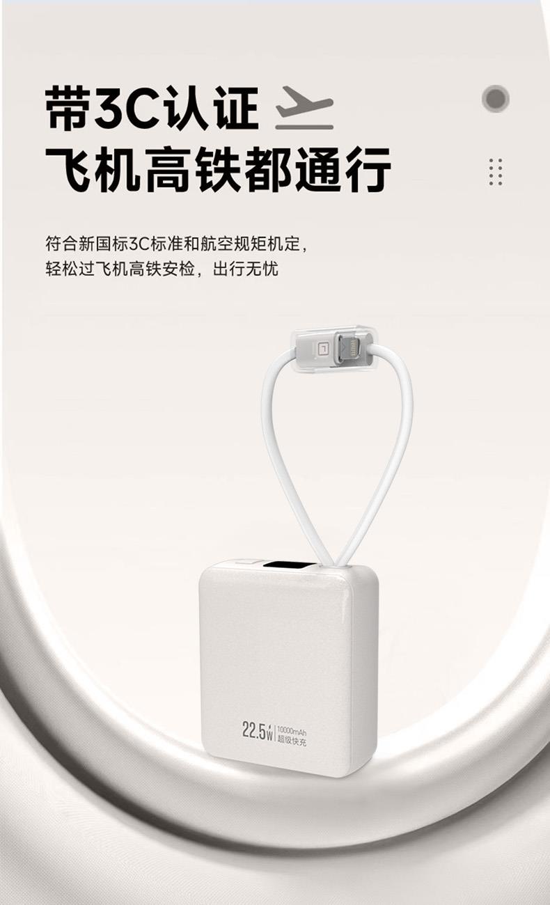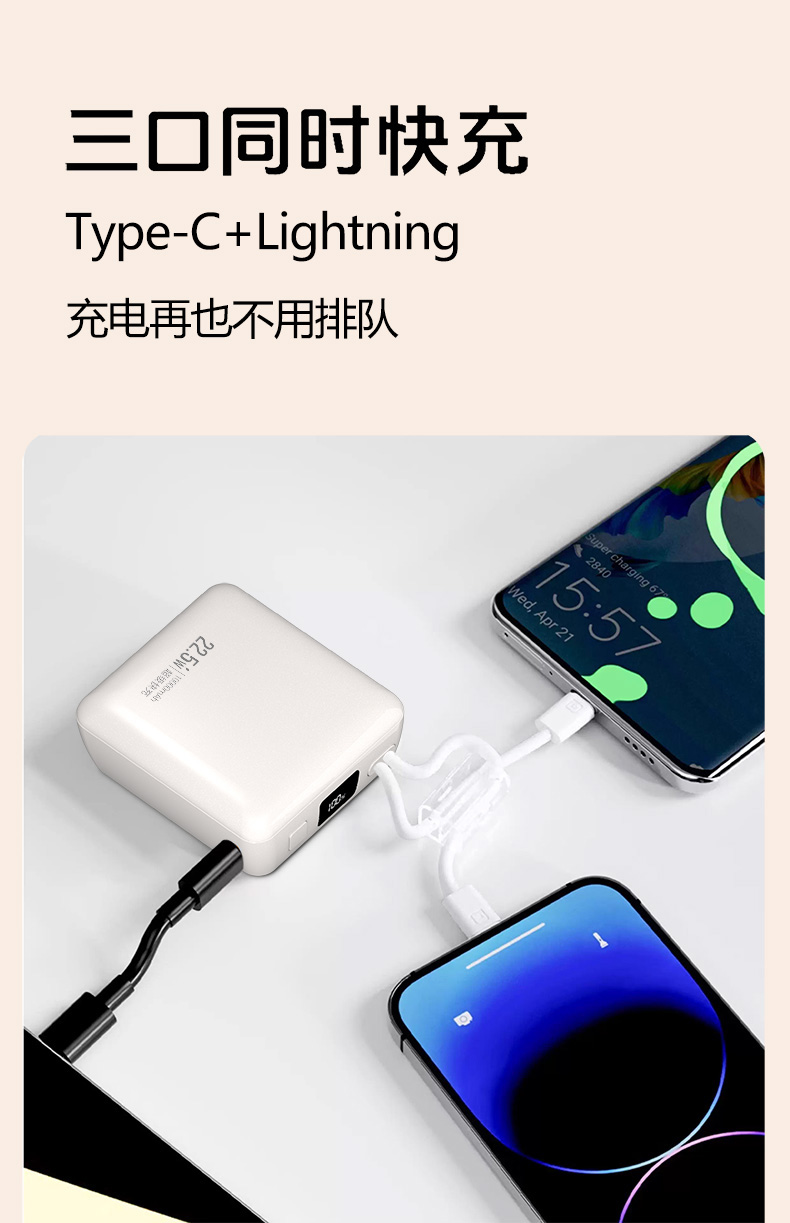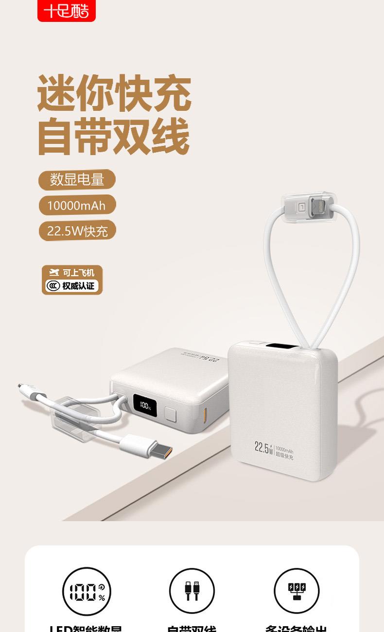 • 十足酷迷你数显快充自带线移动电源ZS7