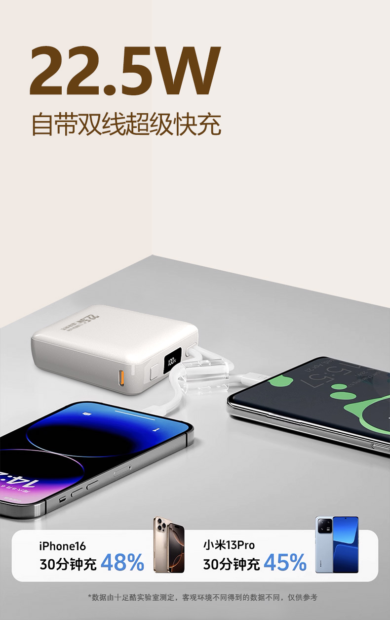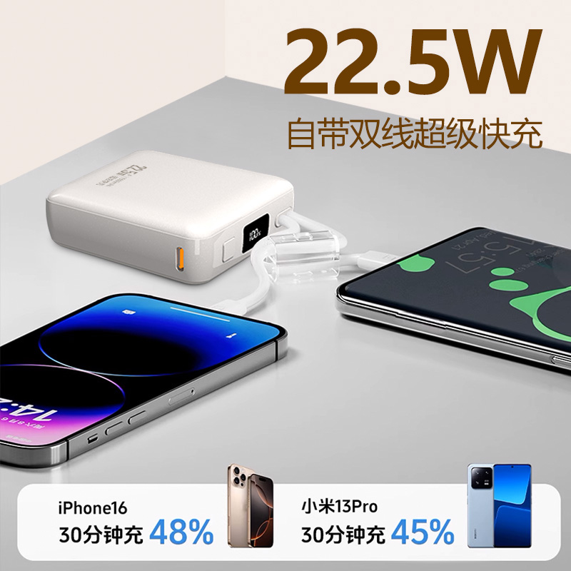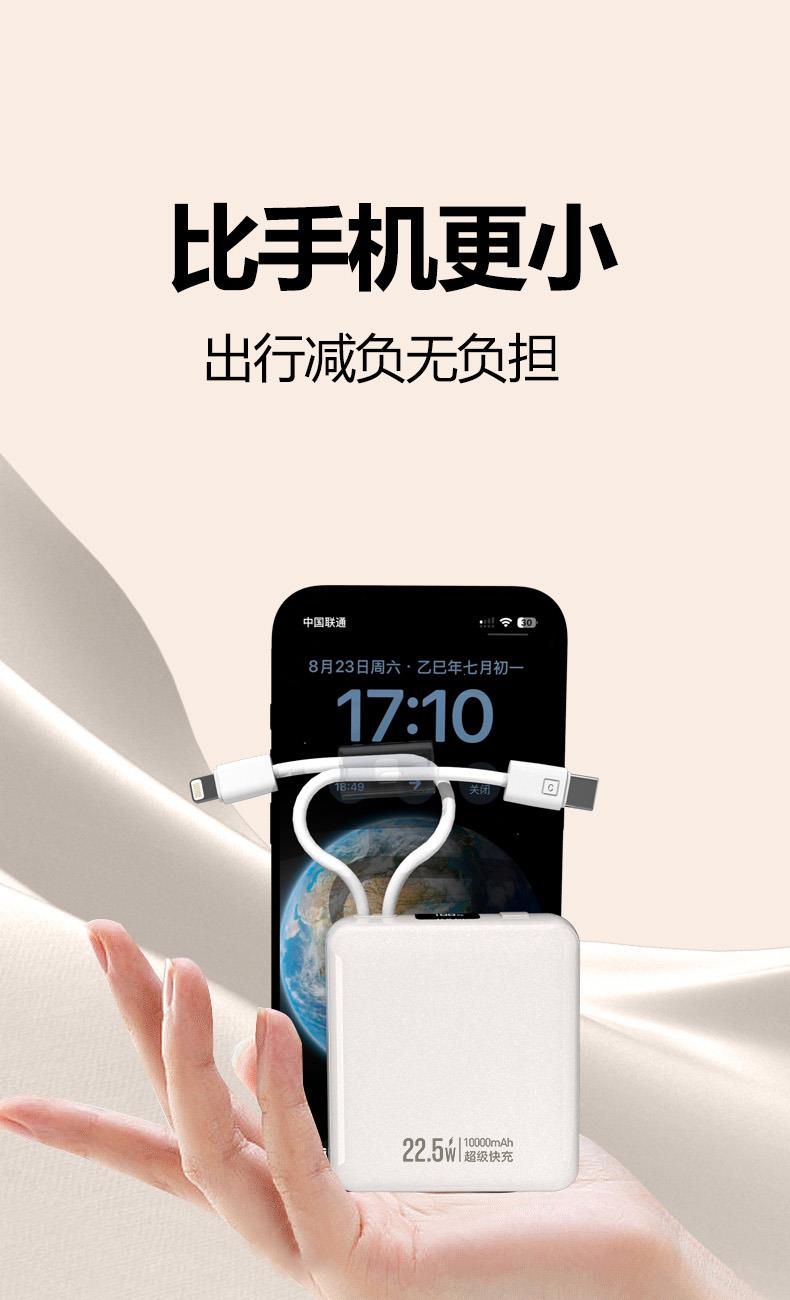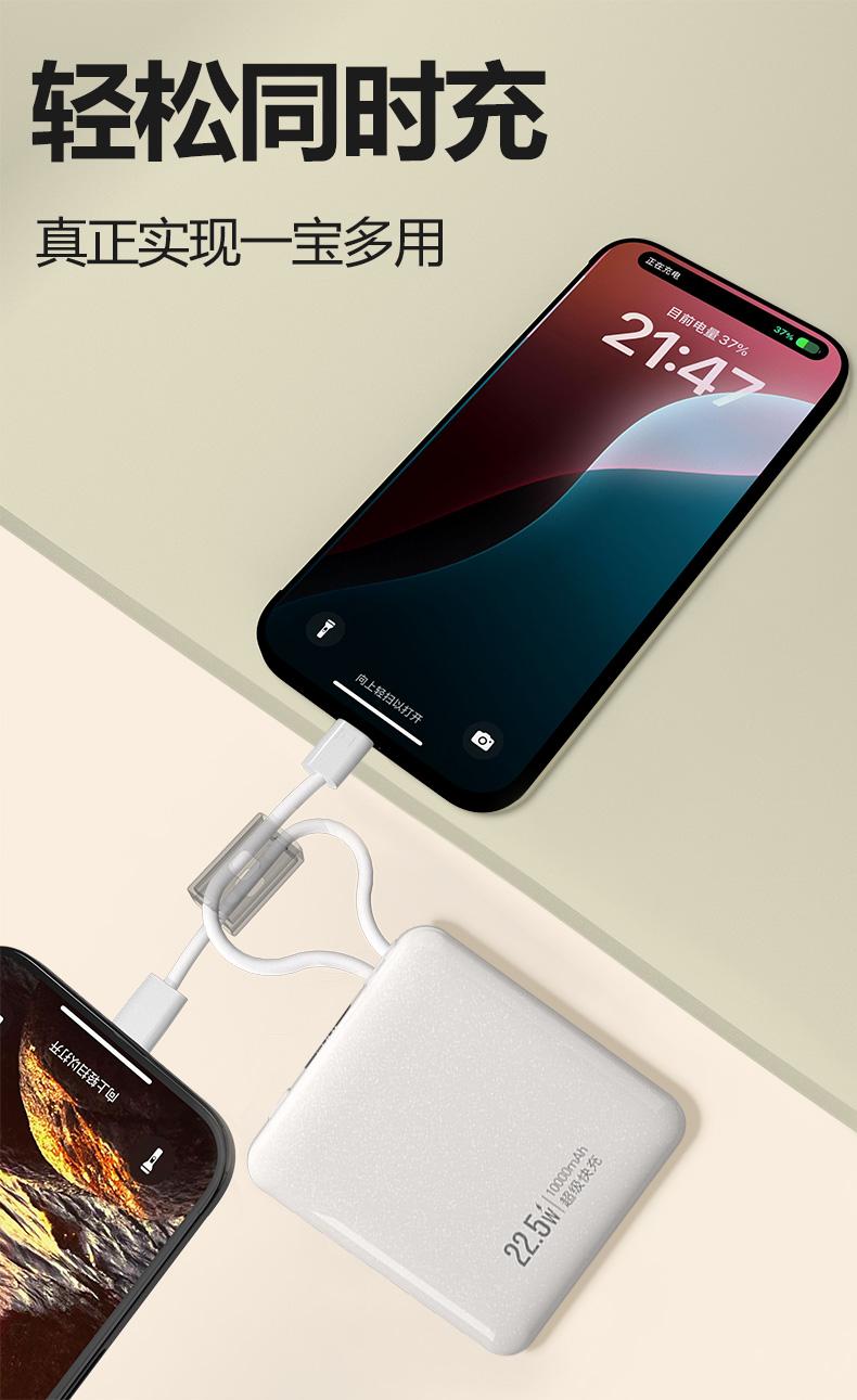• 十足酷迷你数显快充自带线移动电源ZS7