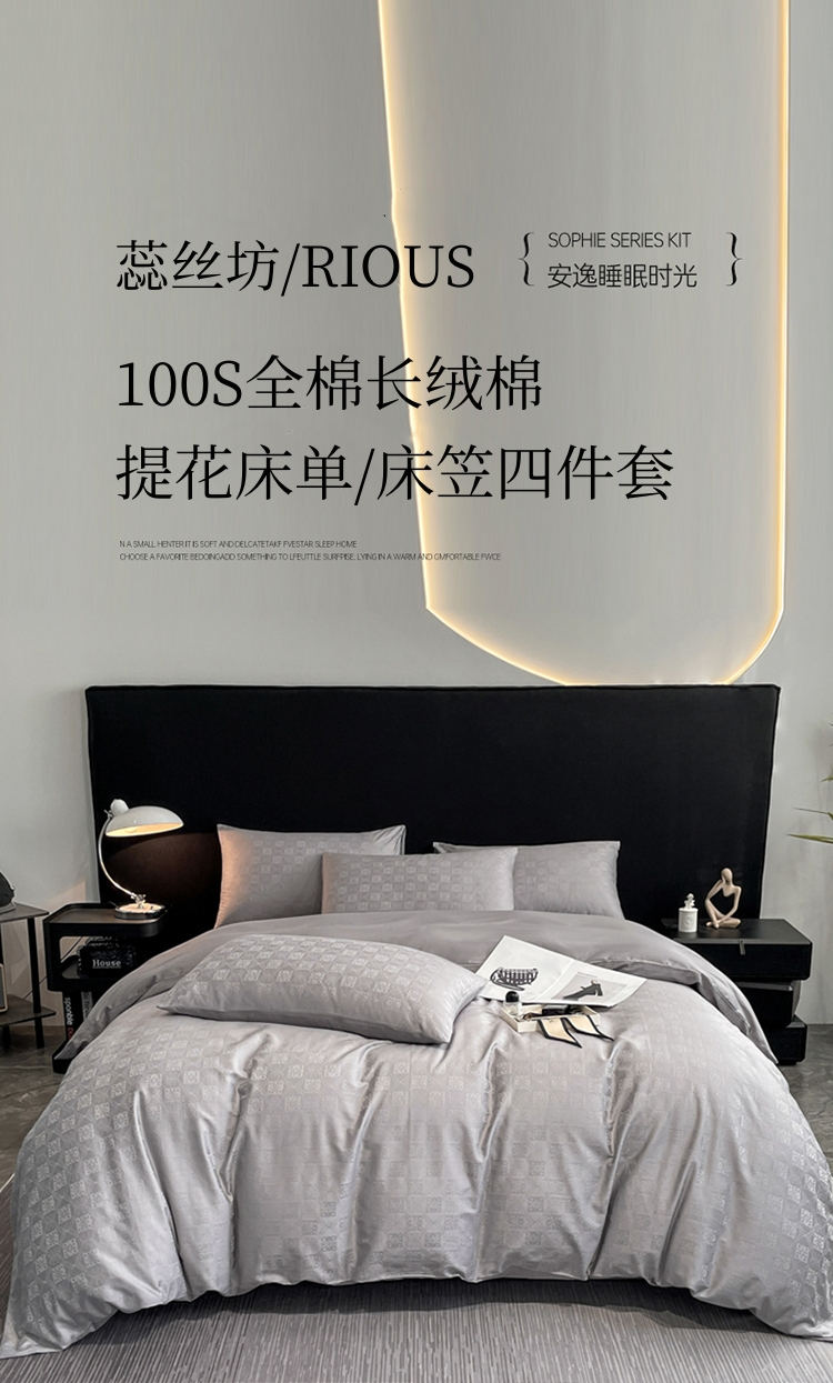蕊丝坊家纺100支全棉长绒棉50提花床单四件套