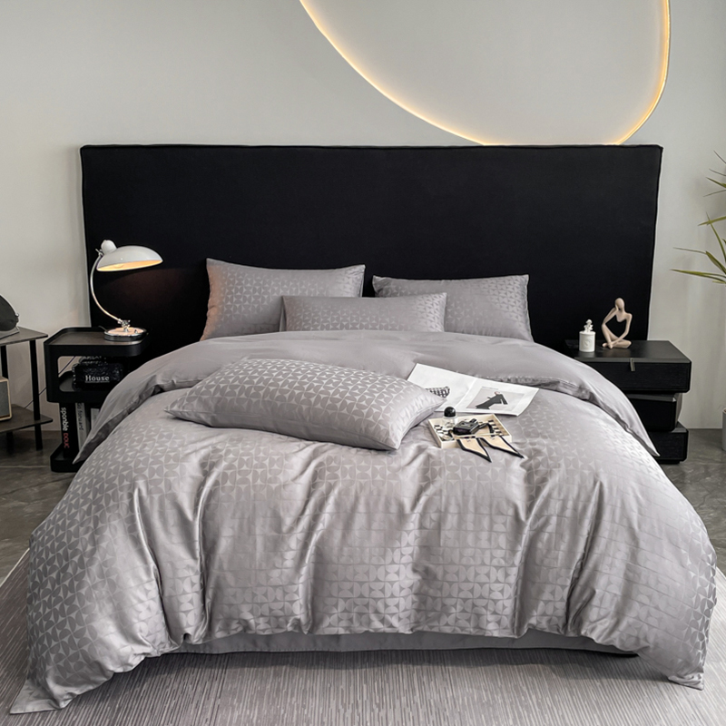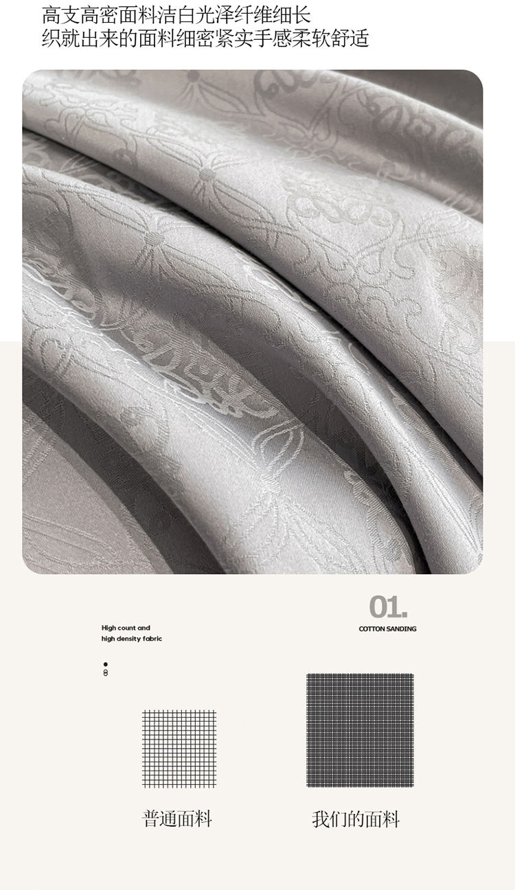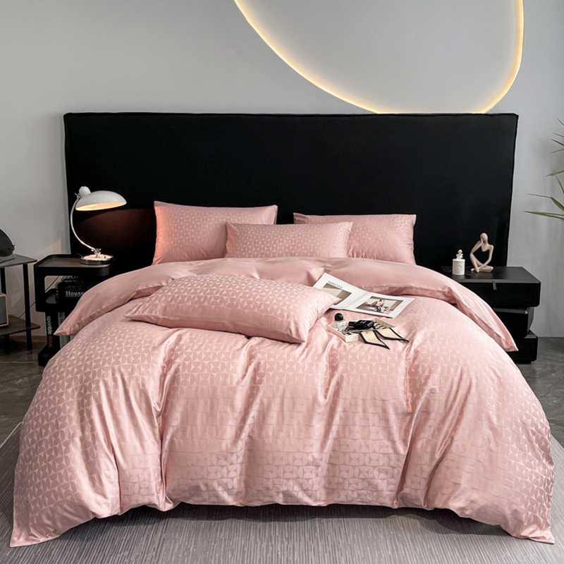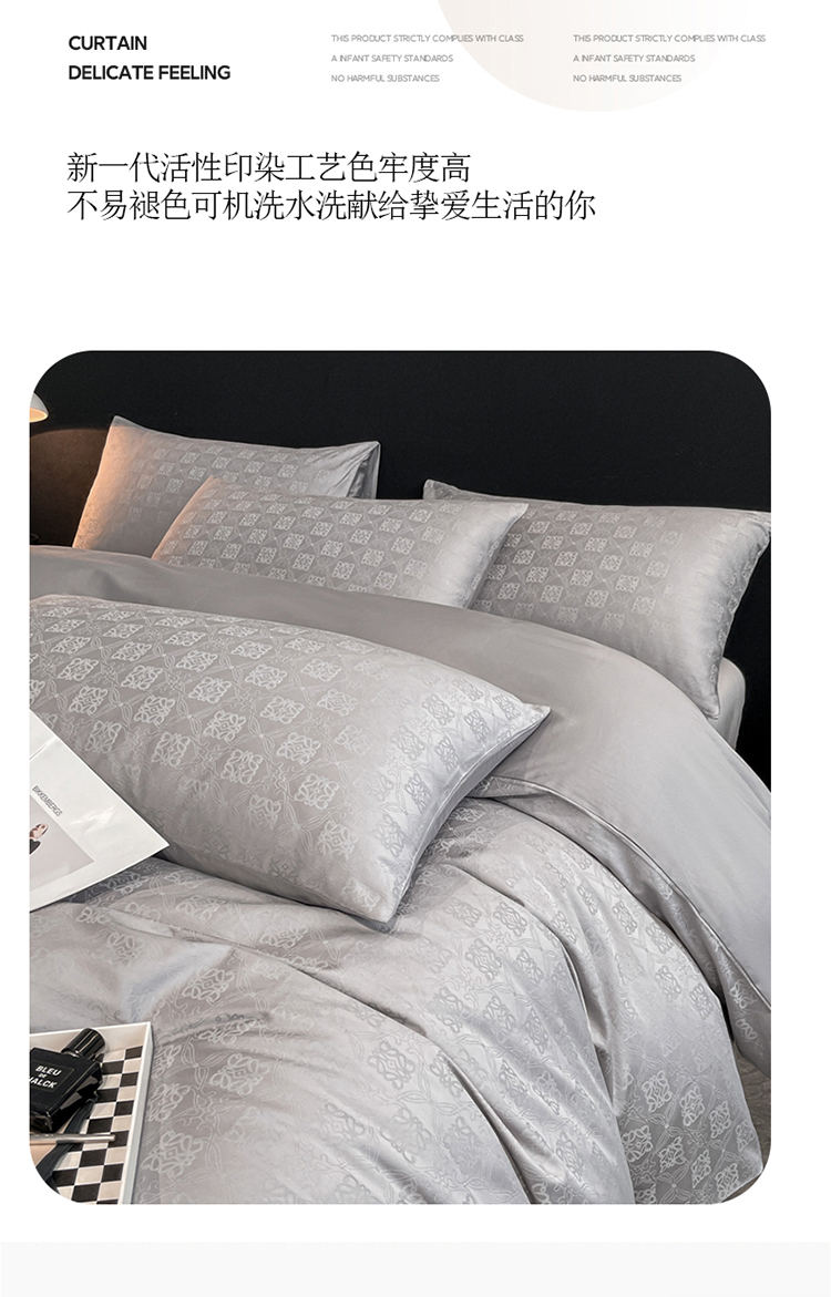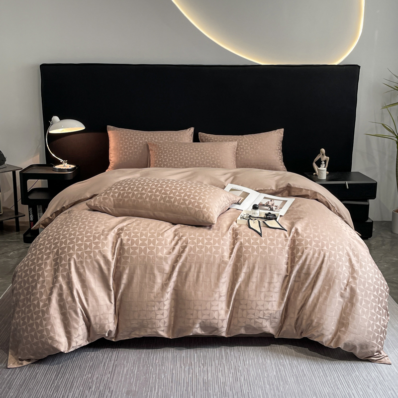规格:被套200*230cm 床单245*245cm 枕套48*74cm 面料:全棉长绒棉 花色:半圆-豆沙粉/绅士灰/香咖/芬妮香芋紫/叶叶深情-豆沙粉/叶叶深情-香芋紫 低调轻奢的格调,倾向于高雅调性的色彩,面料提花纹、时尚简约,简单舒适的纯正风范。
