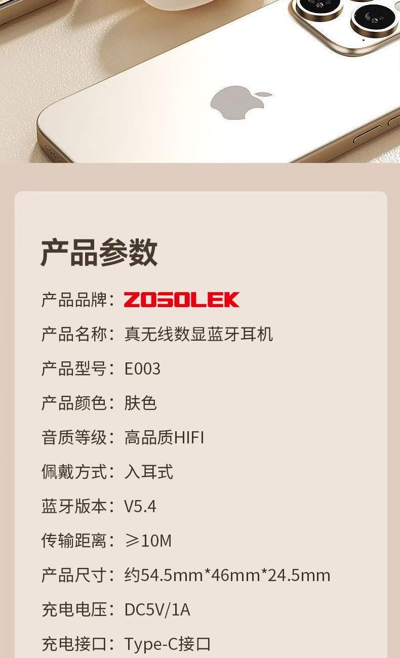 致尚丽和ZOSOLEK真无线数显蓝牙耳机E003