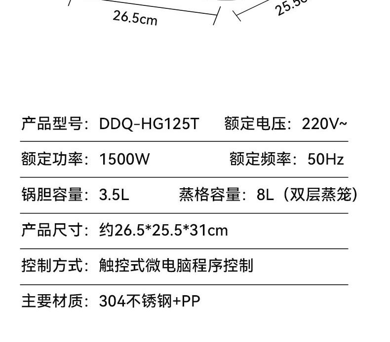 • 德世朗多功能电蒸锅DDQ-HG125T